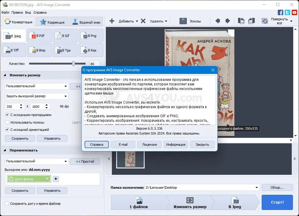 AVS Image Converter — это удобный инструмент для преобразования и редактирования изображений, поддерживающий широкий спектр графических форматов. Программа позволяет быстро конвертировать файлы, применять эффекты, изменять размеры, добавлять водяные знаки и объединять изображения в PDF. Интерфейс ориентирован на простоту использования, а функция предварительного просмотра помогает отслеживать все изменения в реальном времени.