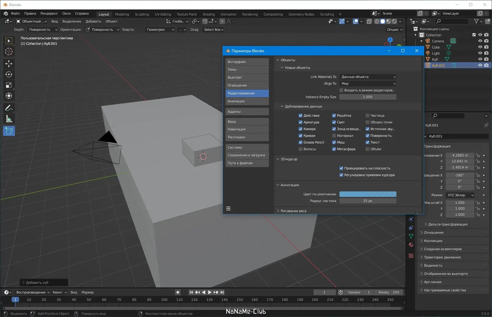 - Встроенный движок Cycles для фотореалистичного рендеринга с учётом глобального освещения.