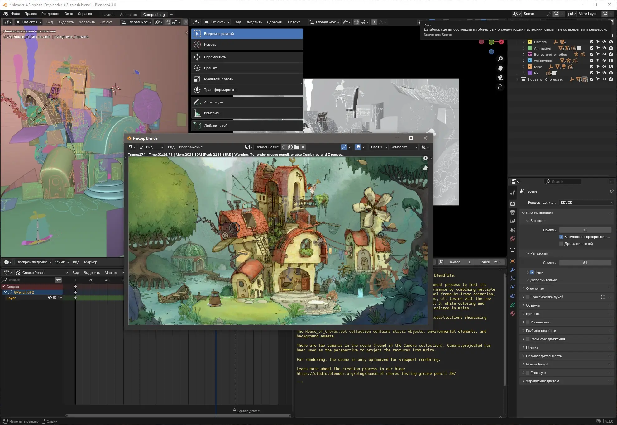 - Встроенная система рендеринга Cycles обеспечивает качественную визуализацию с учётом физики света, а Eevee позволяет работать в режиме реального времени.