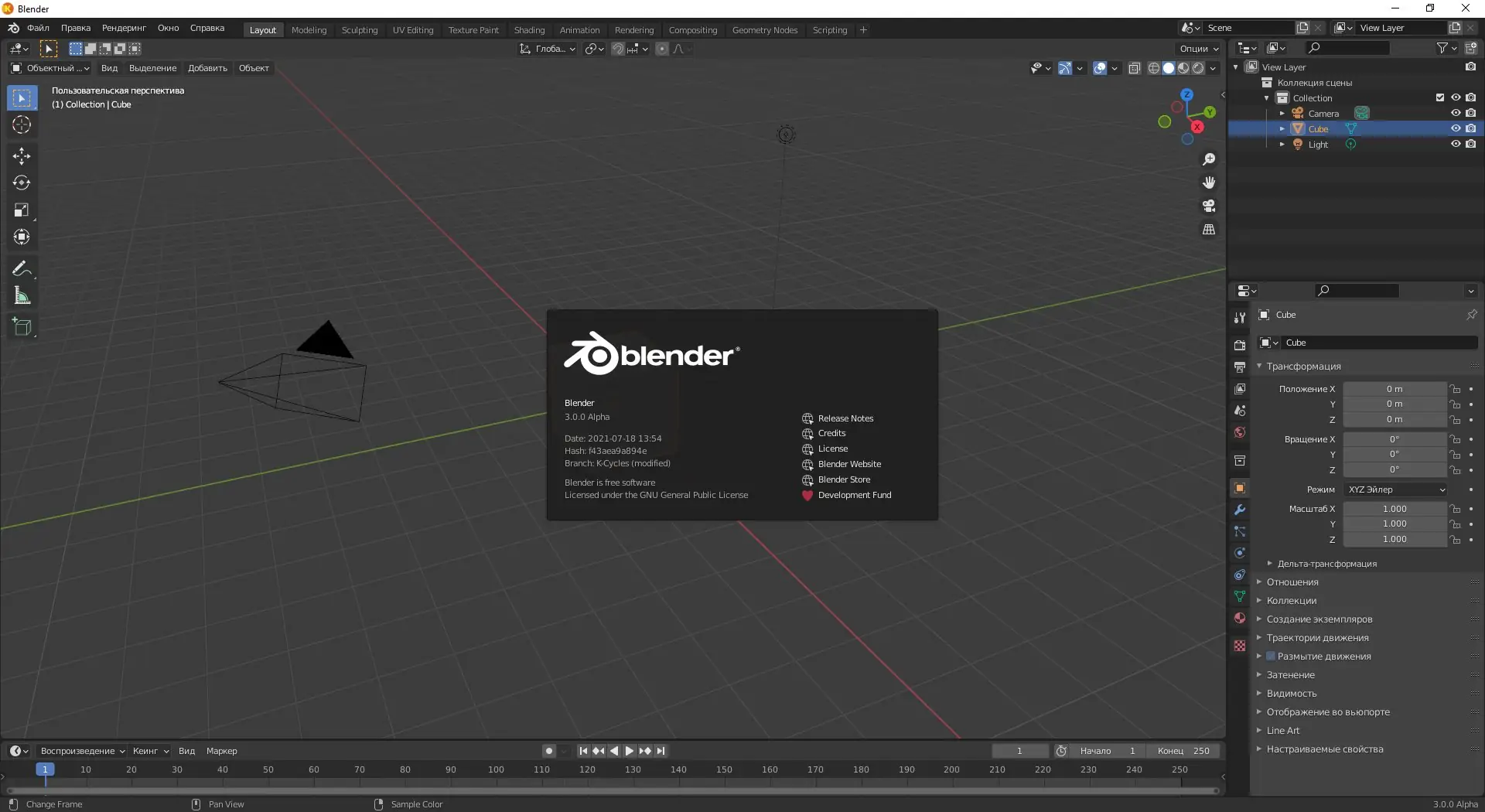 - Поддержка продвинутого рендер-движка Cycles с возможностью использования GPU