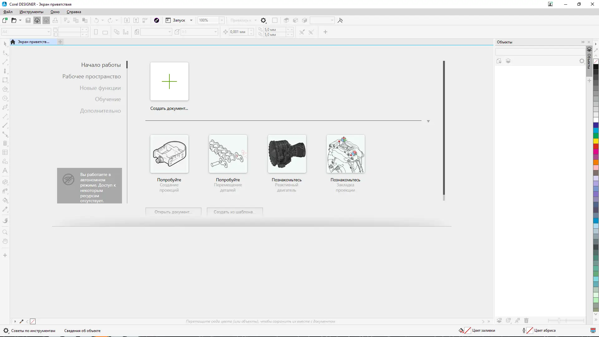 Работа с программой начинается с выбора соответствующего приложения в зависимости от задачи: Corel DESIGNER используется для технических чертежей, CorelDRAW — для графического дизайна, а Corel PHOTO-PAINT — для обработки растровых изображений. Интерфейс адаптируется под сенсорные устройства и перьевой ввод, что упрощает редактирование на планшетах. Для ускорения работы доступны динамические направляющие, режим симметрии, инструменты LiveSketch и интерактивная коррекция перспективы. Импорт 3D-моделей из CAD-систем позволяет автоматически генерировать виды и проекции, а стили объектов помогают поддерживать единый визуальный стиль во всех документах.