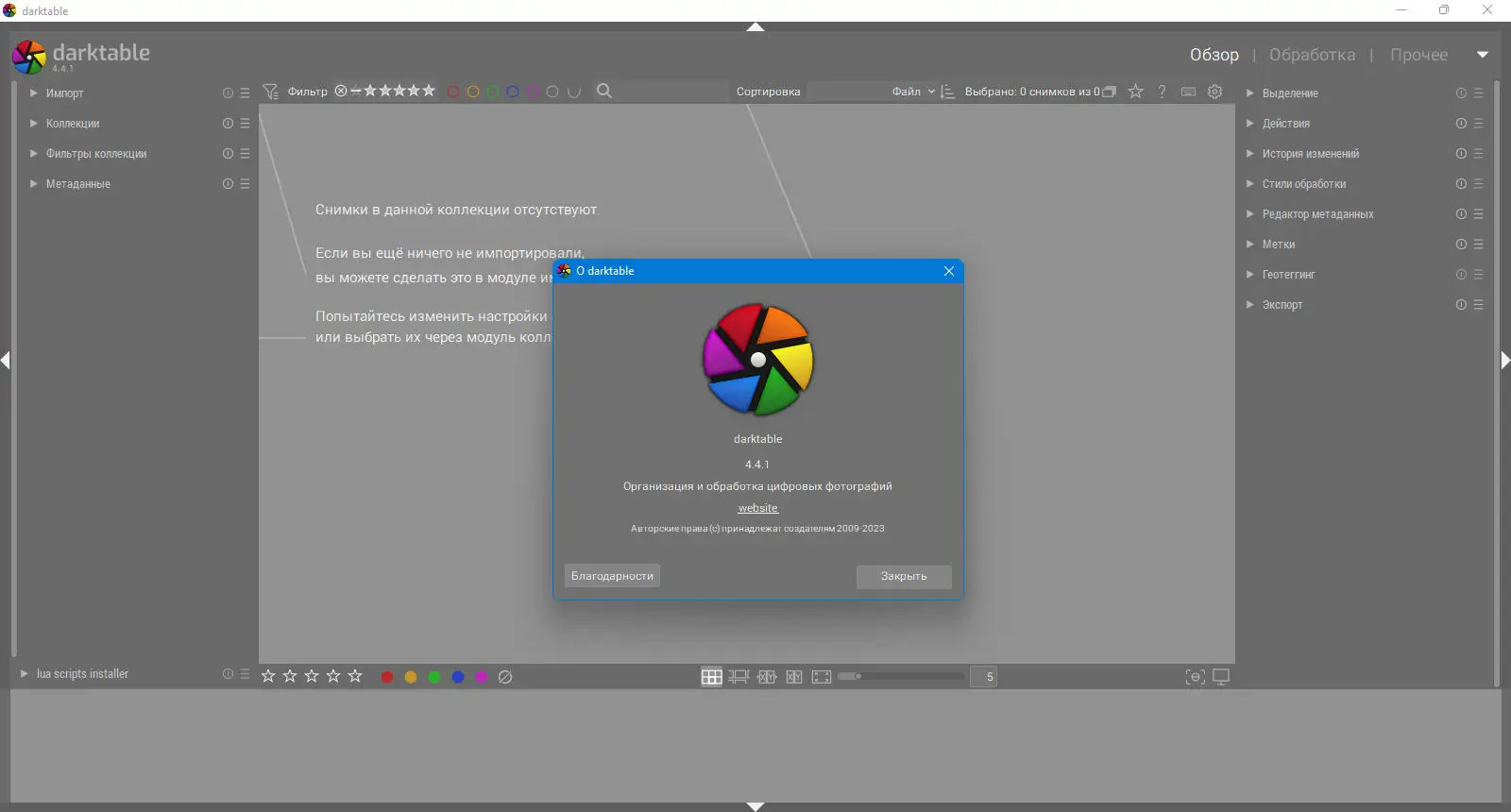 Darktable — это мощное программное обеспечение для обработки цифровых фотографий, ориентированное на профессионалов и любителей, работающих с форматом RAW. Приложение объединяет функции каталогизации, редактирования и экспорта изображений в единой среде, обеспечивая полный контроль над рабочим процессом. Интерфейс оптимизирован под высокую производительность благодаря использованию кэширования и эффективной работы с базой данных.