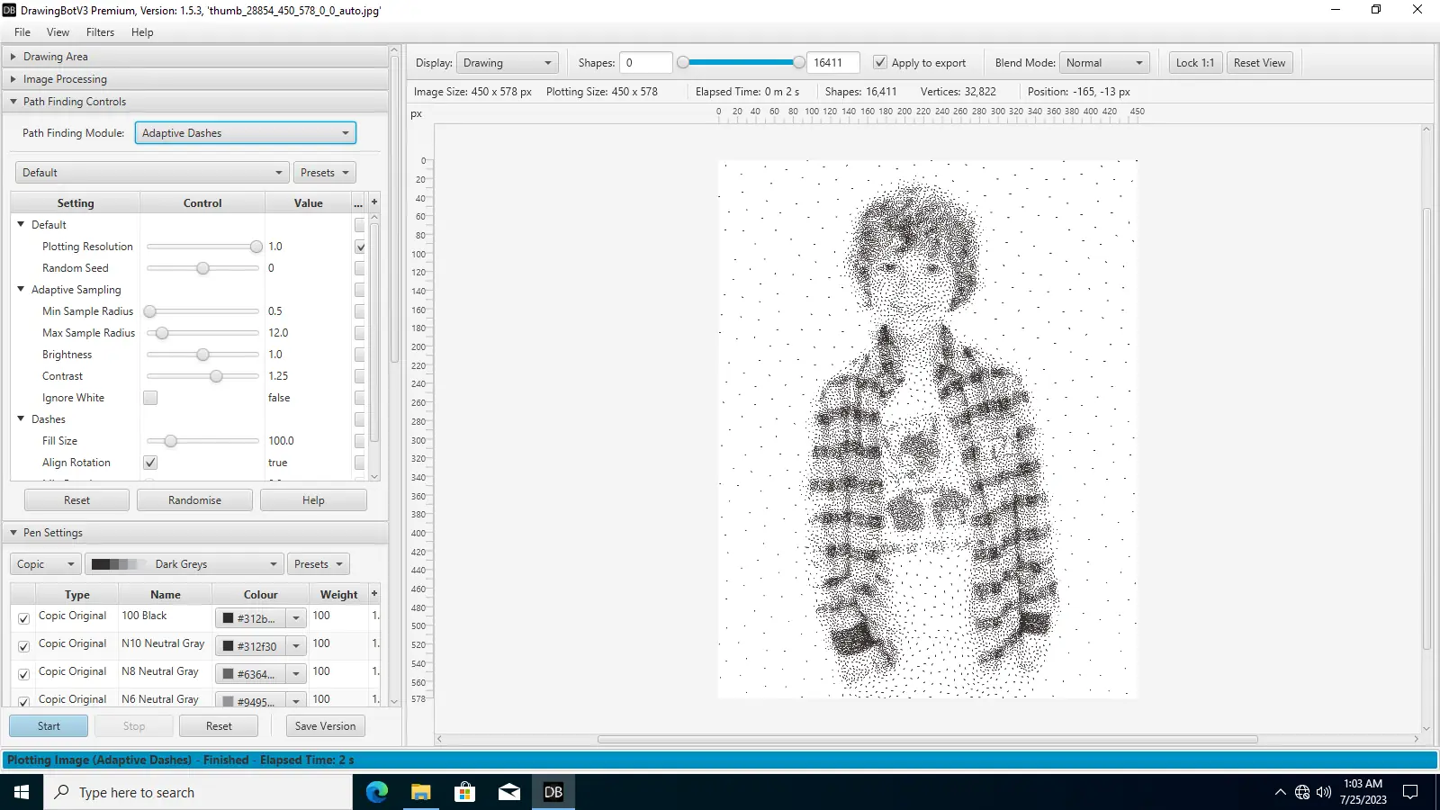 DrawingBotV3 предлагает широкий функционал, особенно в премиальной версии, где доступны продвинутые режимы обработки и экспорта. Программа демонстрирует высокую производительность благодаря использованию OpenGL-рендерера и поддержке пакетной обработки. При этом интерфейс остаётся интуитивно понятным, что снижает порог входа для новичков.