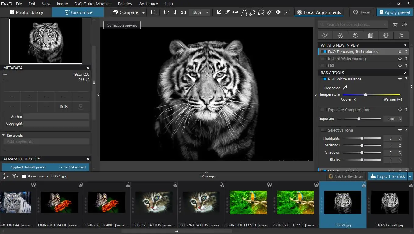 DxO PhotoLab — это универсальное решение для постобработки цифровых изображений, ориентированное на максимальную точность и естественность цветопередачи. Программа автоматически применяет коррекции на основе глубокого анализа характеристик камеры и объектива, что позволяет устранять оптические искажения, хроматические аберрации и виньетирование. Благодаря интеллектуальным алгоритмам, каждый снимок получает персонализированную обработку, учитывающую физические свойства оптики и сенсора.