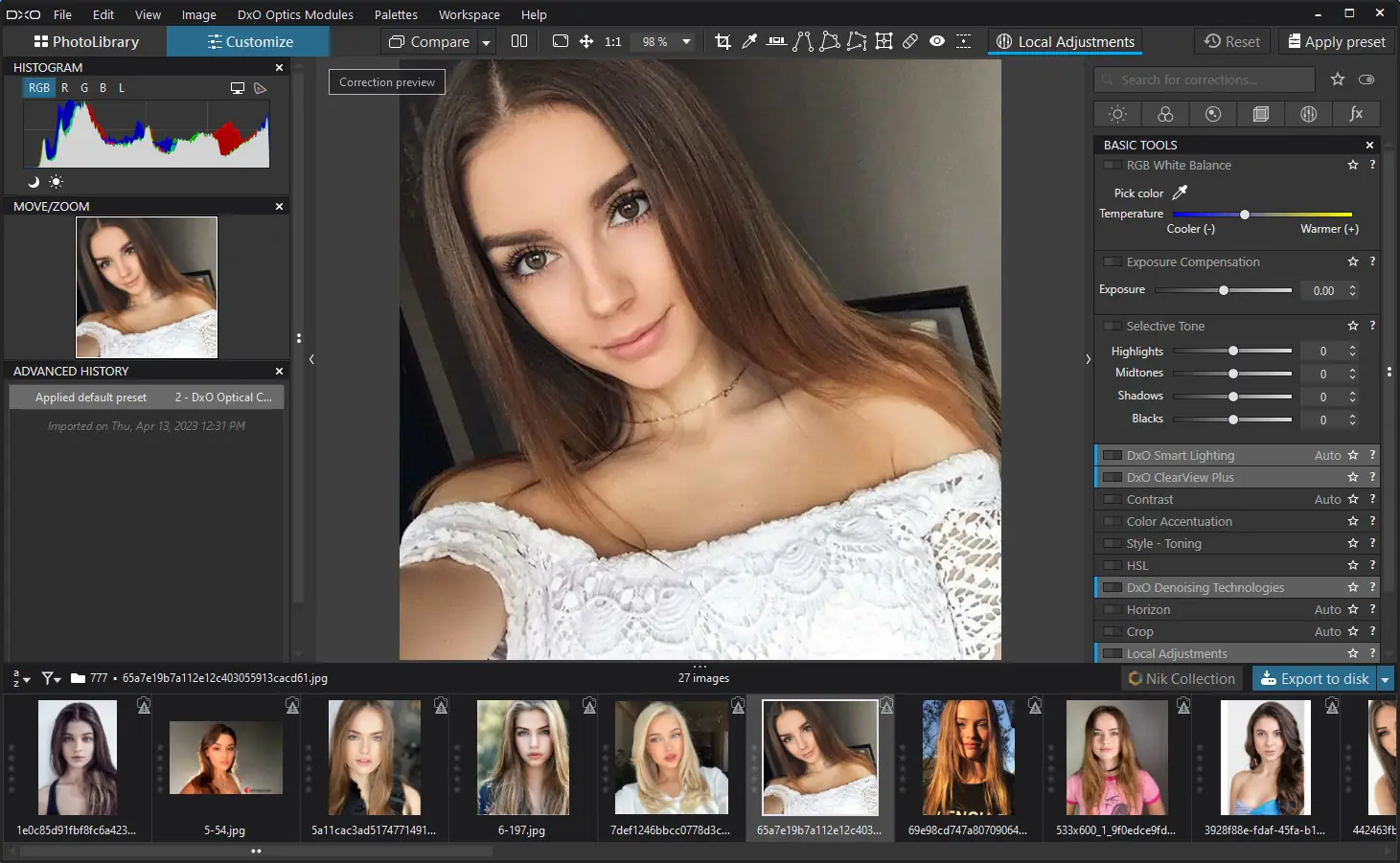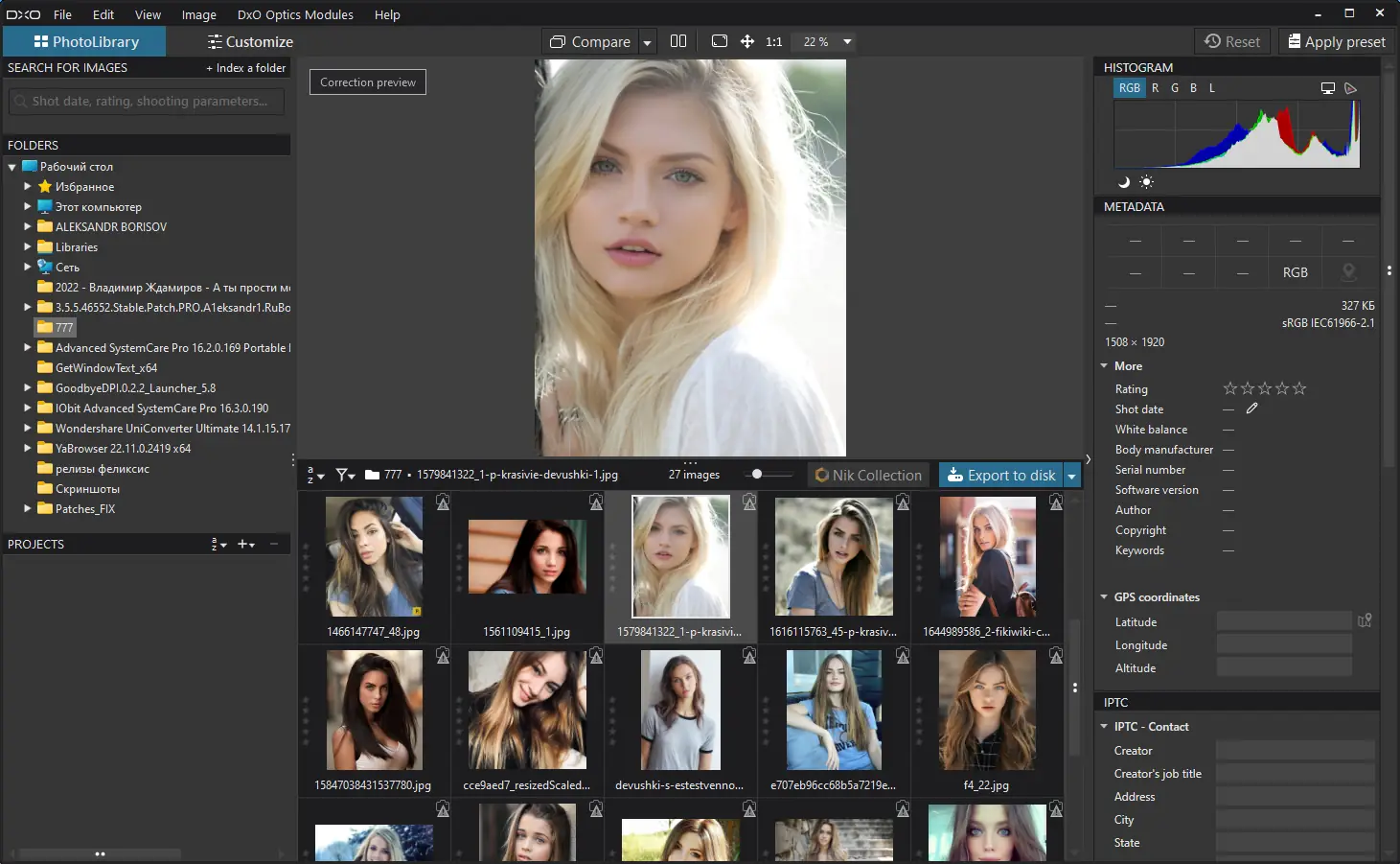 - Точная калибровка цветопередачи с помощью фирменных профилей DxO