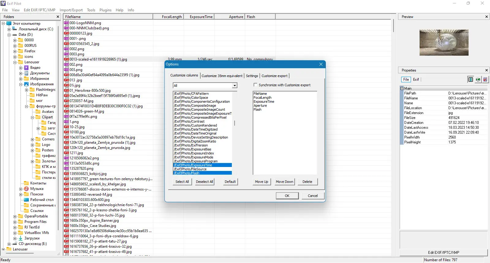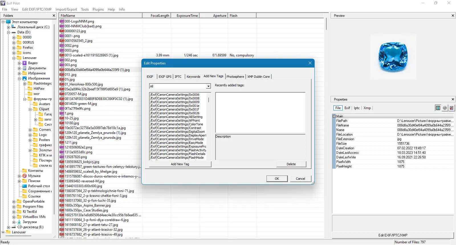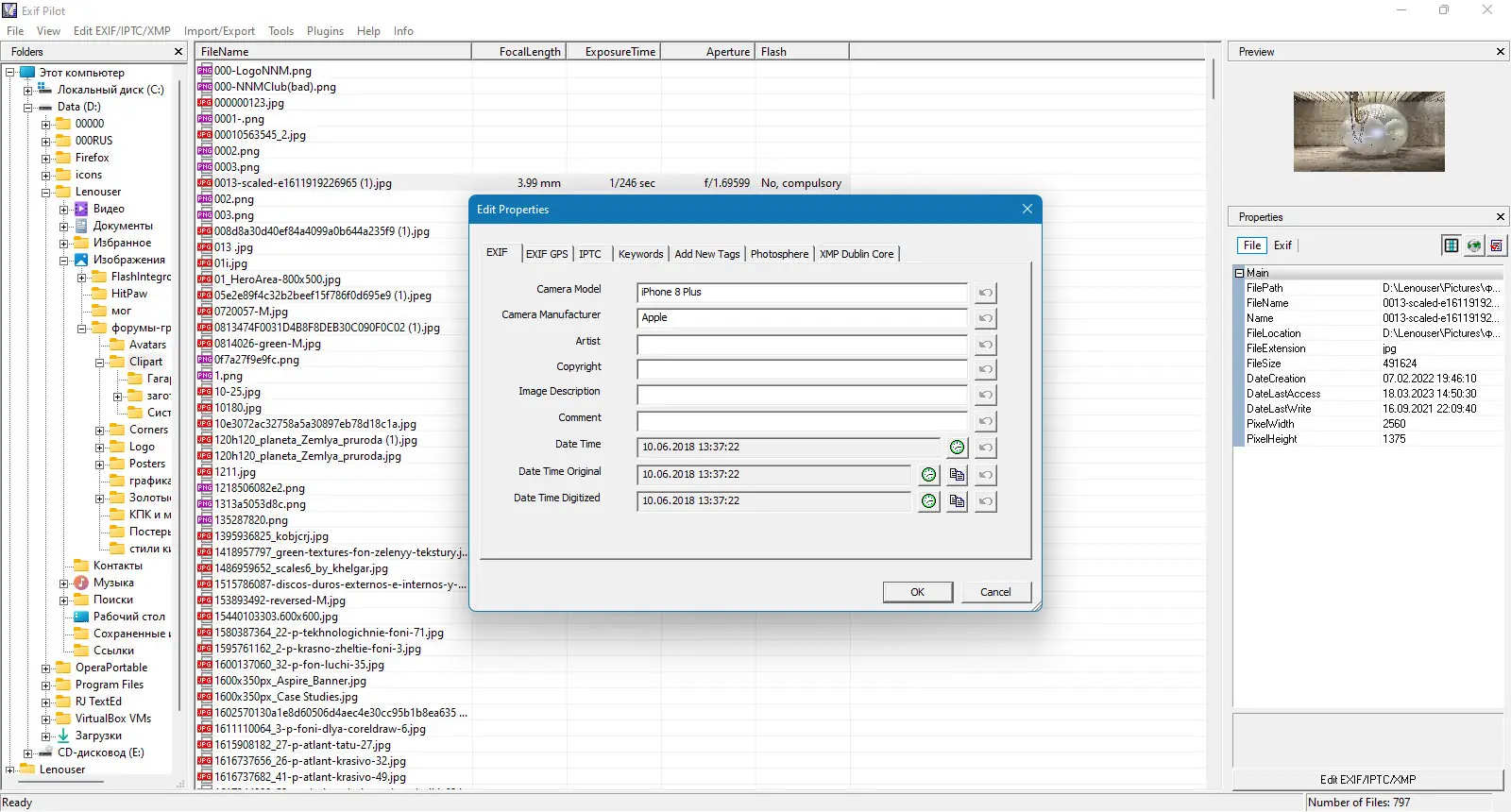 - Некоторые теги, особенно в блоке Makernote, недоступны для редактирования.