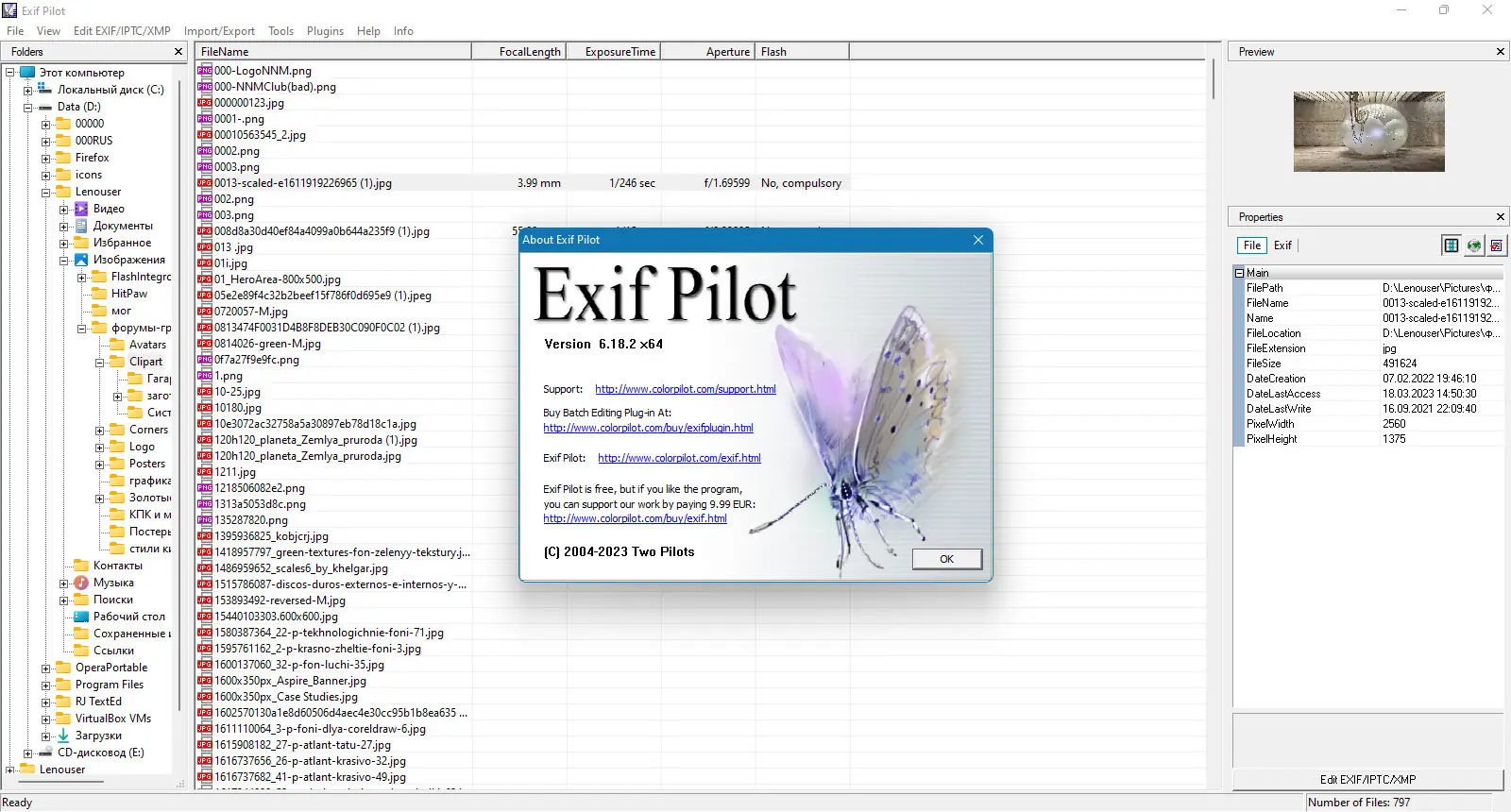 Программа Exif Pilot доступна для бесплатного использования с расширенным функционалом в платной версии. Бесплатная версия позволяет просматривать и редактировать основные теги, а также очищать метаданные. Версия pro скачать на русском языке предлагает дополнительные инструменты, включая пакетную обработку и командную строку. Portable сборка обеспечивает мобильность и работу без установки. Обновления программы включают улучшения совместимости и поддержку новых форматов.