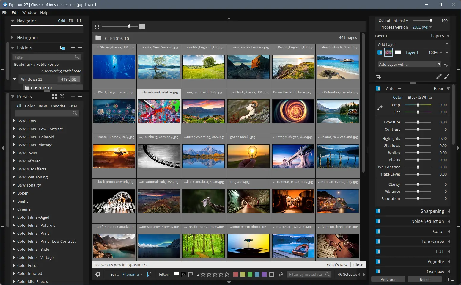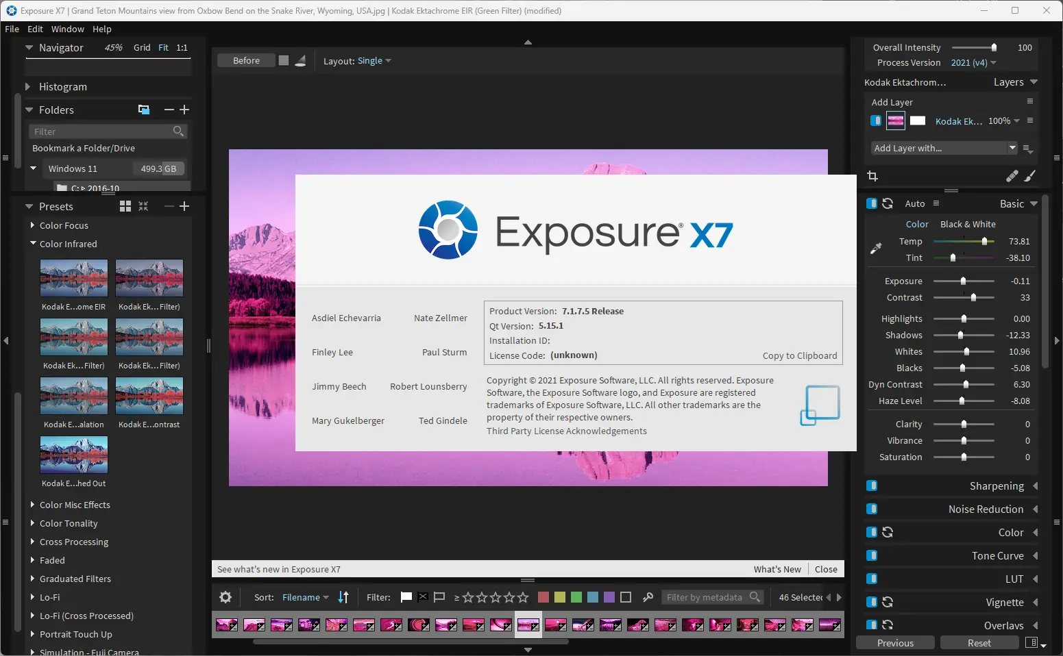Exposure X7 — это не просто редактор изображений, а полноценная среда для творческой обработки фото. Программа разработана с акцентом на имитацию аналоговой фотографии, предлагая точную симуляцию характеристик пленок таких производителей, как Fujifilm, Kodak и Agfa. Пользователи могут настраивать цветопередачу, экспозицию, контрастность и насыщенность, используя как ручные инструменты, так и готовые пресеты. Особенно удобен режим работы с цветной и черно-белой пленкой, каждый из которых включает уникальные параметры обработки.