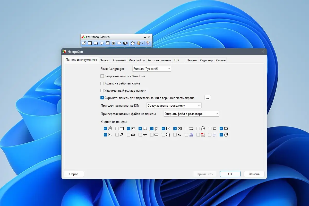 - Горячие клавиши для быстрого запуска нужного типа захвата.