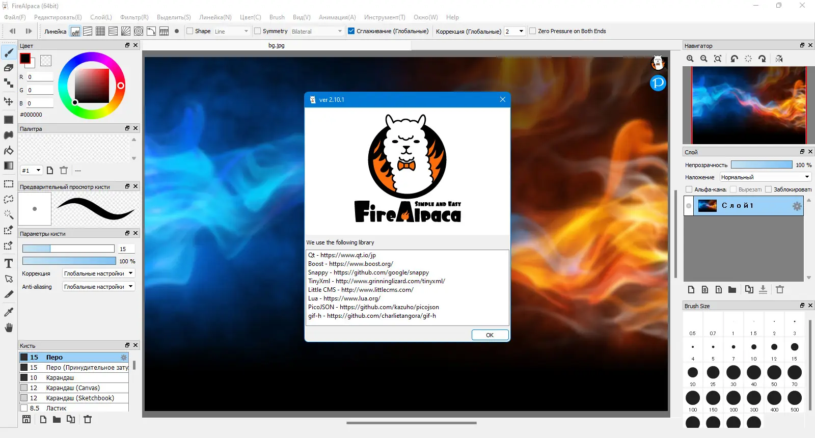 FireAlpaca — это легковесный и интуитивно понятный графический редактор, предназначенный для базовой обработки изображений и цифрового рисования. Программа подойдёт как начинающим художникам, так и тем, кто ищет простое решение для редактирования картинок без сложных настроек. Она предлагает удобный интерфейс, поддержку слоёв и работу с популярными форматами файлов, включая PSD и собственный MDP.
