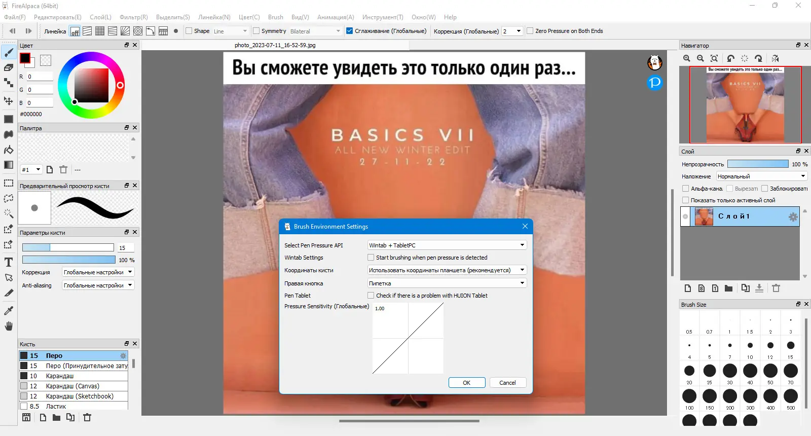 - Поддержка графических планшетов и корректная работа с нажатием пера