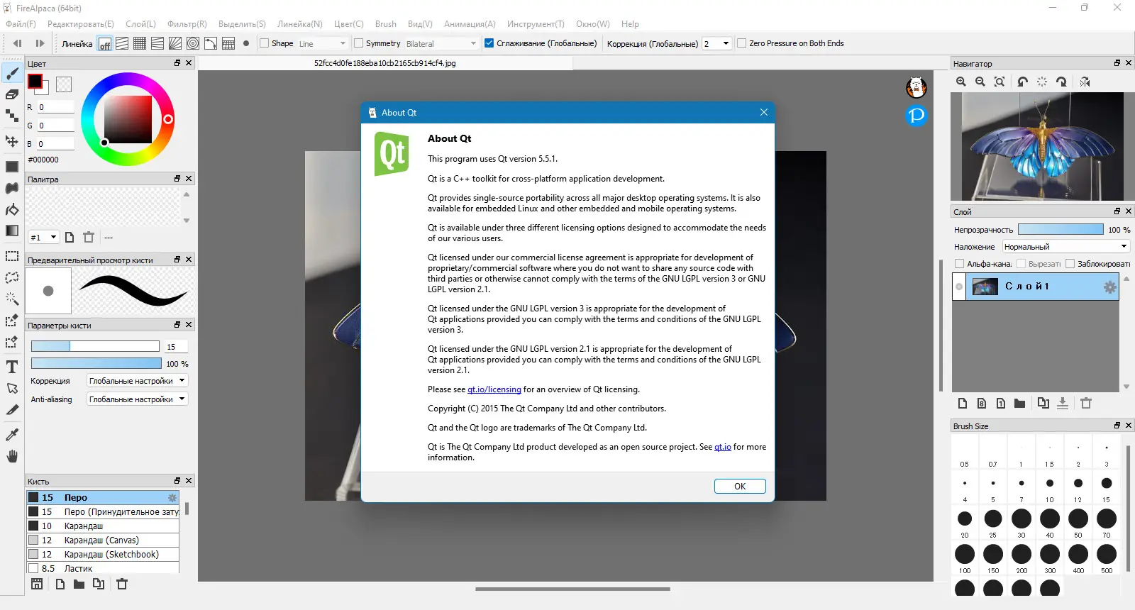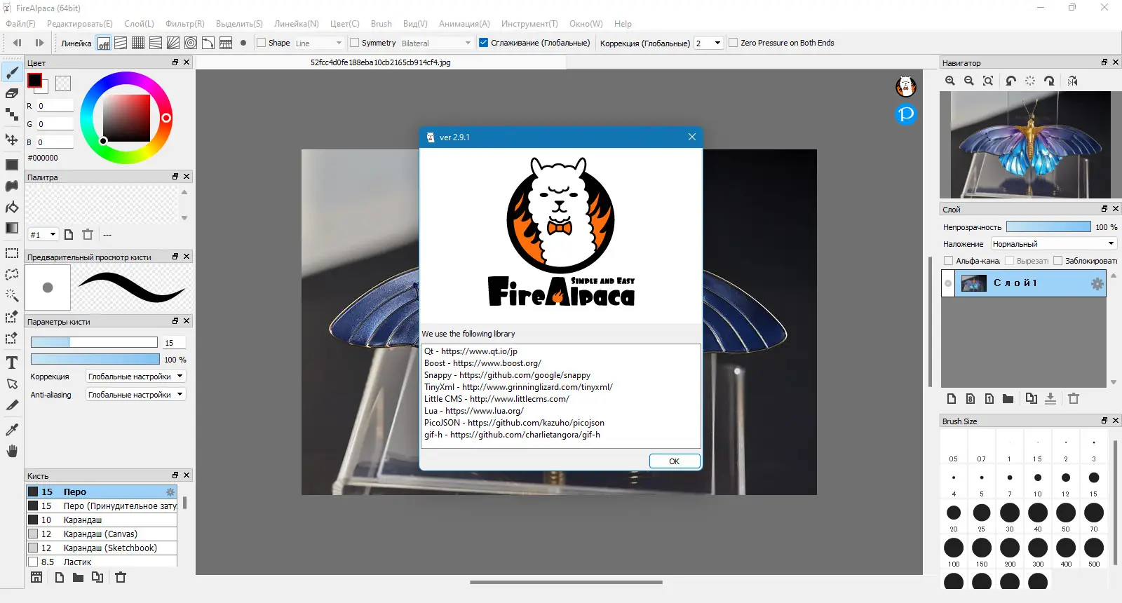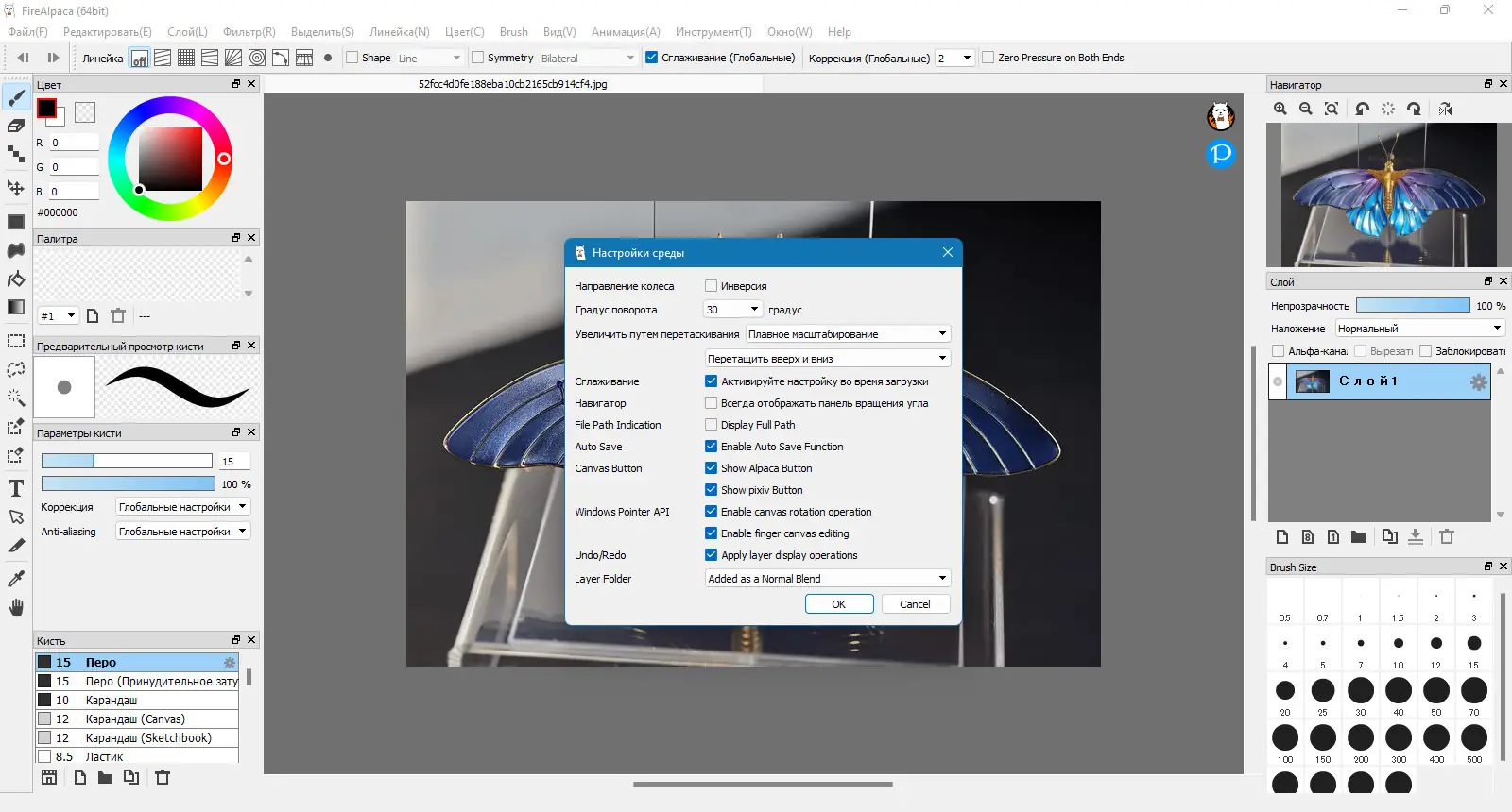 - Программа для рисования с возможностью настройки кистей и слоёв