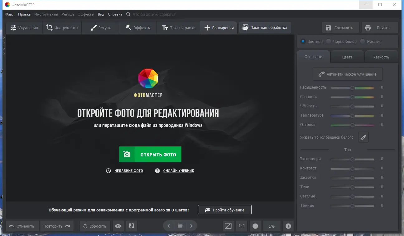 ФотоМАСТЕР — это современная программа для редактирования изображений, сочетающая в себе мощные инструменты обработки и интуитивно понятный интерфейс. С её помощью можно улучшать качество снимков, корректировать цвет, устранять дефекты и применять художественные эффекты без необходимости в глубоких знаниях графических редакторов. Работа с фотографиями становится простой, быстрой и приятной даже для новичков.