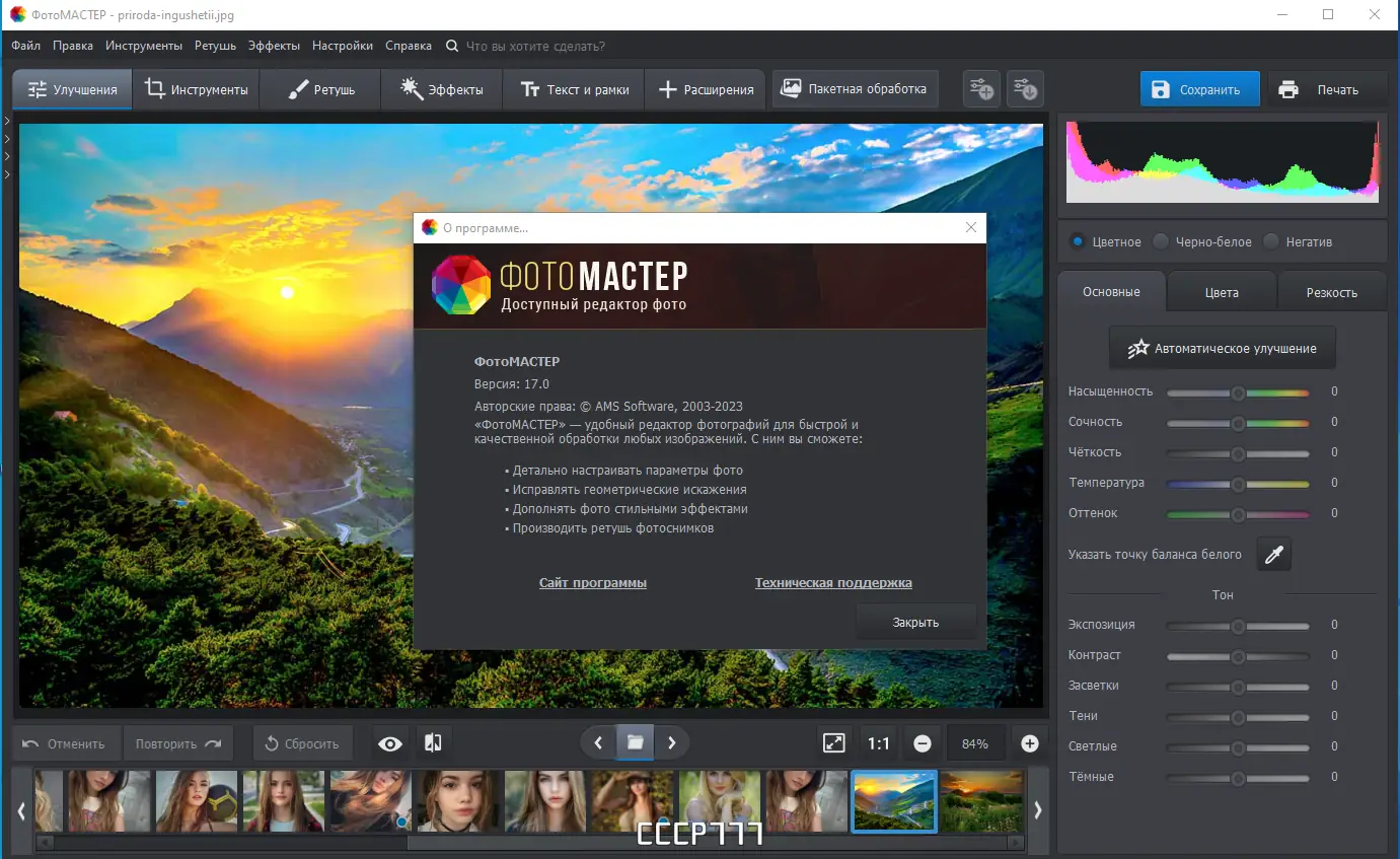 ФотоМАСТЕР — это универсальный инструмент для редактирования изображений, сочетающий мощные функции профессионального редактора с интуитивно понятным интерфейсом. Программа позволяет улучшать качество снимков, корректировать цвет, удалять дефекты и применять художественные эффекты без необходимости в глубоких знаниях графических редакторов. Благодаря гибкой системе настроек и отсутствию потери качества при редактировании, ФотоМАСТЕР подходит как для новичков, так и для опытных пользователей.