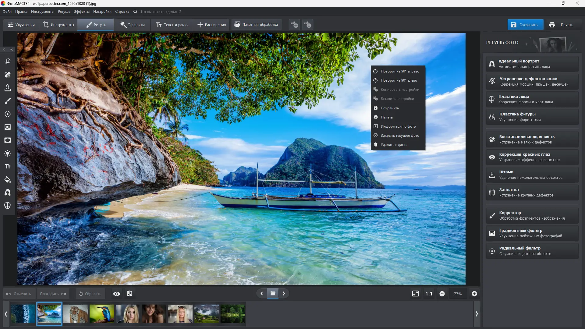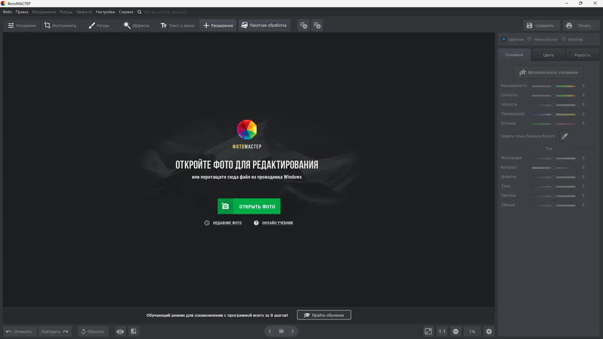 ФотоМАСТЕР — это современный графический редактор, предназначенный для быстрой и качественной обработки изображений. Программа сочетает в себе мощные инструменты ретуши, цветокоррекции и фильтры, которые позволяют превращать обычные снимки в визуальные шедевры. Благодаря интуитивному интерфейсу и поддержке неограниченного отмены действий, редактирование становится простым и безопасным процессом без потери качества оригинала.
