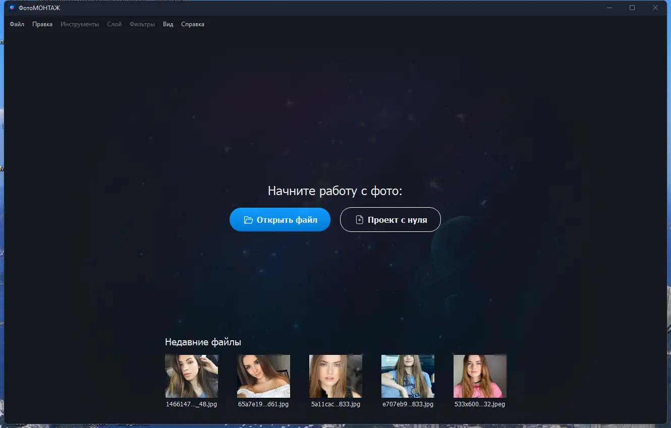 ФотоМОНТАЖ — мощный редактор для обработки фото с поддержкой слоёв, позволяющий создавать реалистичные коллажи, выполнять профессиональную ретушь лица и улучшать качество изображений. Программа предлагает инструменты для замены фона, точечной коррекции, цветокоррекции и автоматического улучшения снимков. С её помощью можно редактировать фотографии как новичку, так и опытному пользователю.