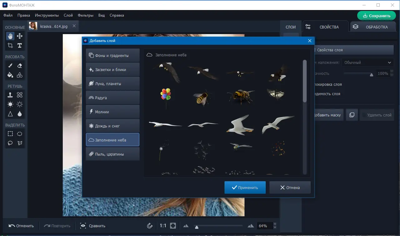 Работа со слоями в ФотоМОНТАЖ организована настолько просто, что даже начинающий пользователь быстро освоит сложные техники монтажа.