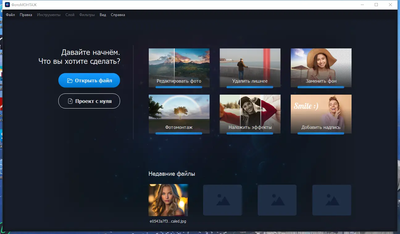 ФотоМОНТАЖ — многофункциональный редактор для обработки изображений с поддержкой слоёв, цветокоррекции и ретуши. Программа позволяет удалять объекты, менять фон, создавать коллажи и улучшать качество фото с помощью автоматических и ручных инструментов. Благодаря интуитивному интерфейсу и мощным функциям, она подходит как для новичков, так и для опытных пользователей.