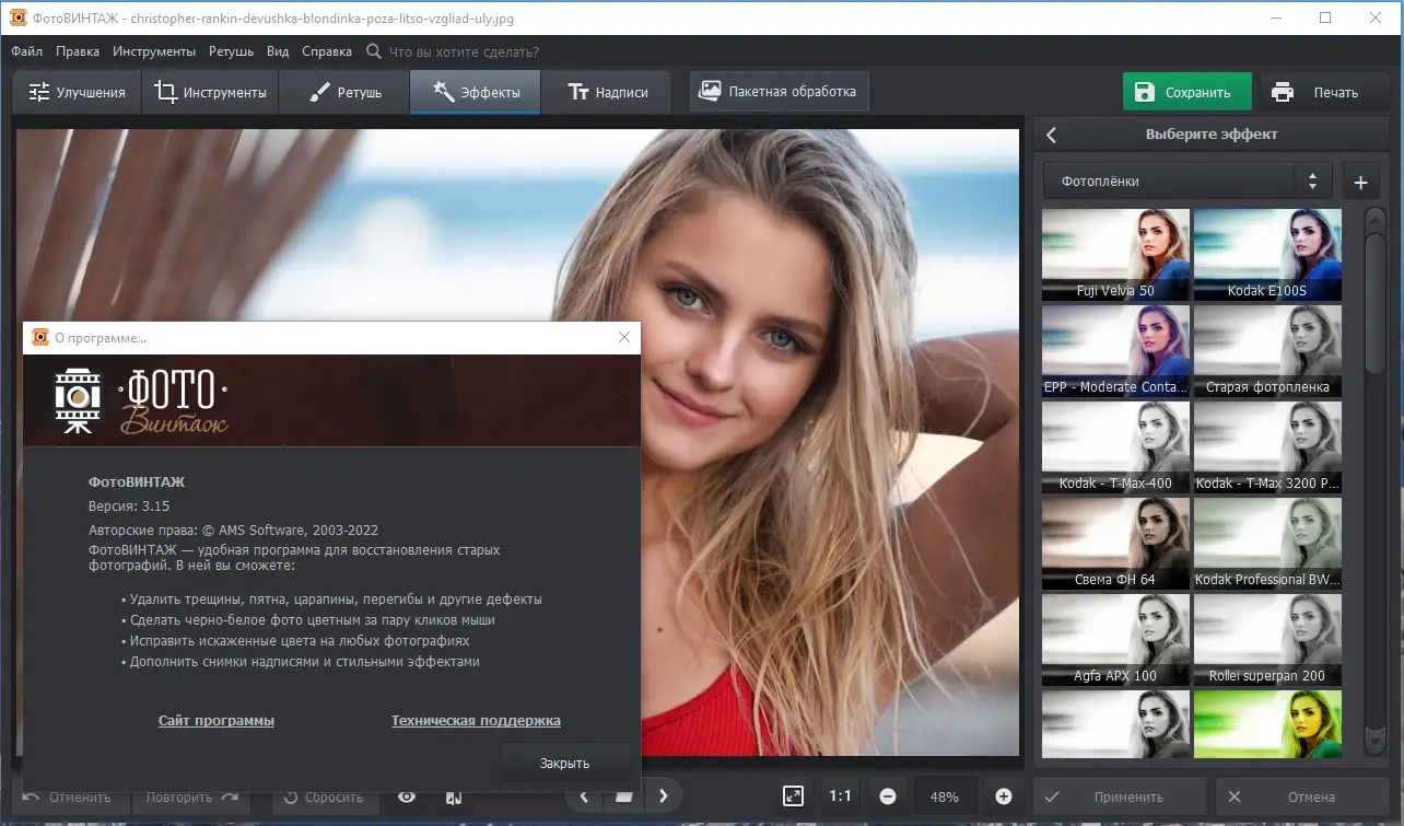 ФотоВИНТАЖ предлагает комплексное решение для восстановления и улучшения старых снимков, сочетая в себе простоту и функциональность. Программа отлично справляется с блёклыми и повреждёнными фотографиями, а встроенные эффекты позволяют экспериментировать с визуальным стилем. Поддержка русского языка и наличие обучающих материалов делают её доступной для пользователей любого уровня. Версия 6.0 уже показала высокую эффективность, но обновление до 7.0 значительно расширило возможности для ретуширования.