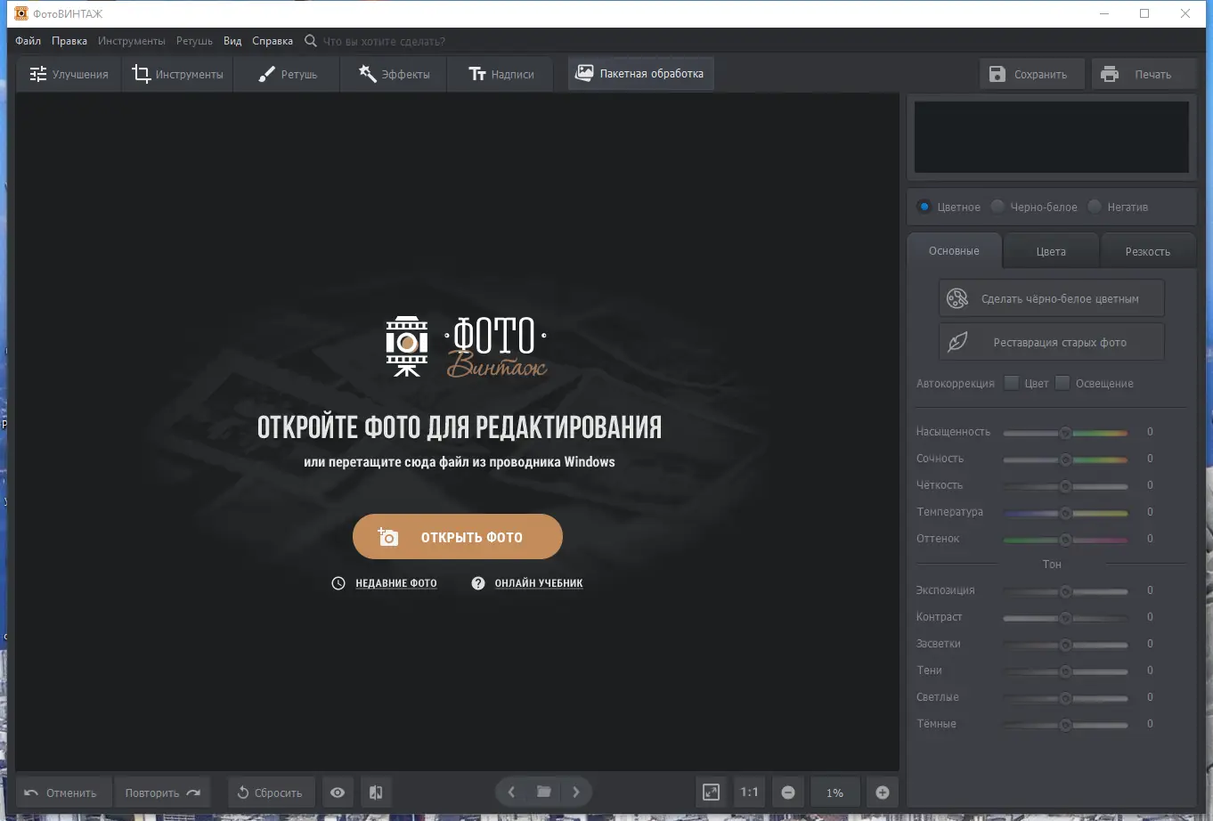 ФотоВИНТАЖ сочетает в себе простоту и функциональность, делая ретушь доступной каждому.