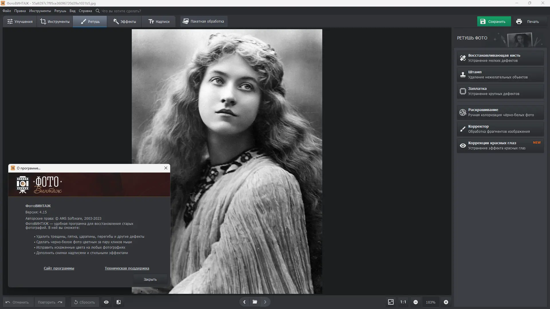 ФотоВИНТАЖ разработан специально для тех, кто хочет вернуть былую яркость и детализацию старым семейным снимкам. С его помощью можно легко справиться с повреждениями, вызванными временем: царапинами, пятнами, разрывами и выцветанием. Программа использует современные алгоритмы обработки изображений, что делает процесс ретуширования фотографий максимально точным и щадящим по отношению к исходному материалу.