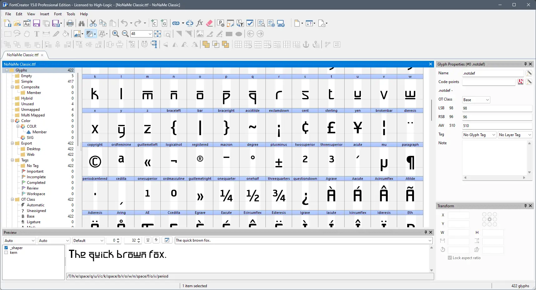 High-Logic FontCreator сочетает в себе широкий функционал и удобный интерфейс, что делает его одним из лидеров среди редакторов шрифтов. Программа предлагает продвинутые инструменты для дизайна и коррекции шрифтов, включая поддержку OpenType-функций и автоматизированные процессы. При этом она остаётся доступной для пользователей с разным уровнем подготовки. Наличие портативной версии позволяет использовать программу на разных компьютерах без установки и следов в реестре.