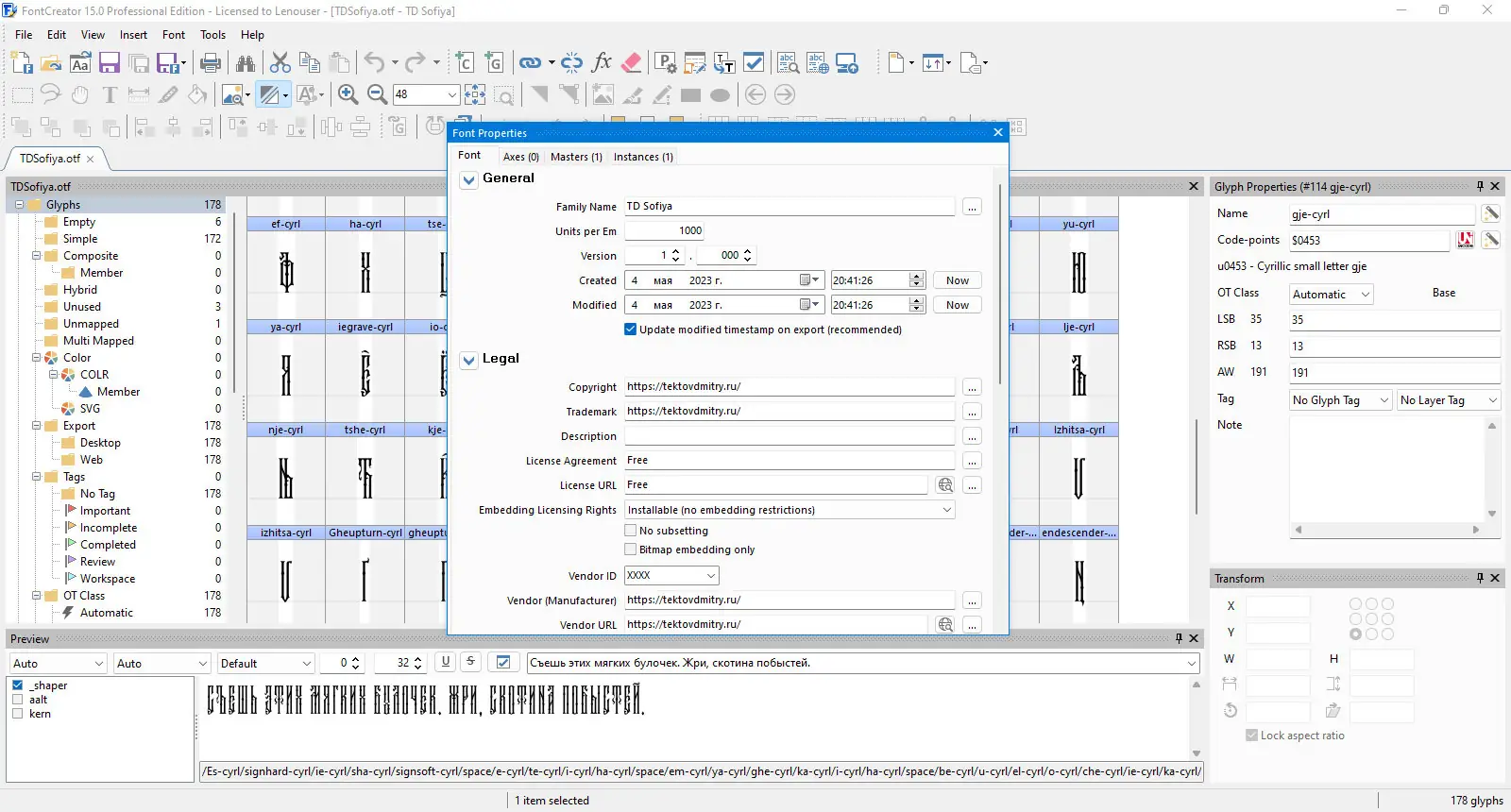 High-Logic FontCreator сочетает в себе широкие функциональные возможности и интуитивный интерфейс, что делает его одним из лидеров среди редакторов шрифтов. Программа поддерживает работу с международными алфавитами, включая кириллицу и восточноазиатские кодировки, а также позволяет редактировать имена шрифтов и устанавливать их напрямую в систему Windows. Однако, из-за сложности типографских задач, новичкам может потребоваться время на освоение всех инструментов.