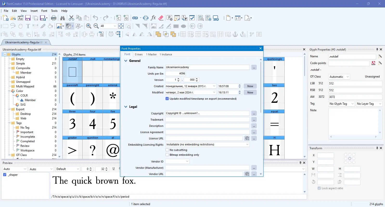 - Инструменты для настройки кернинга и композитных глифов