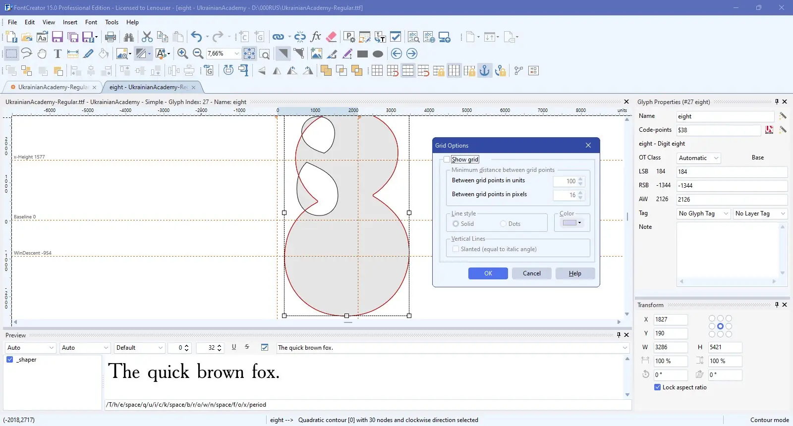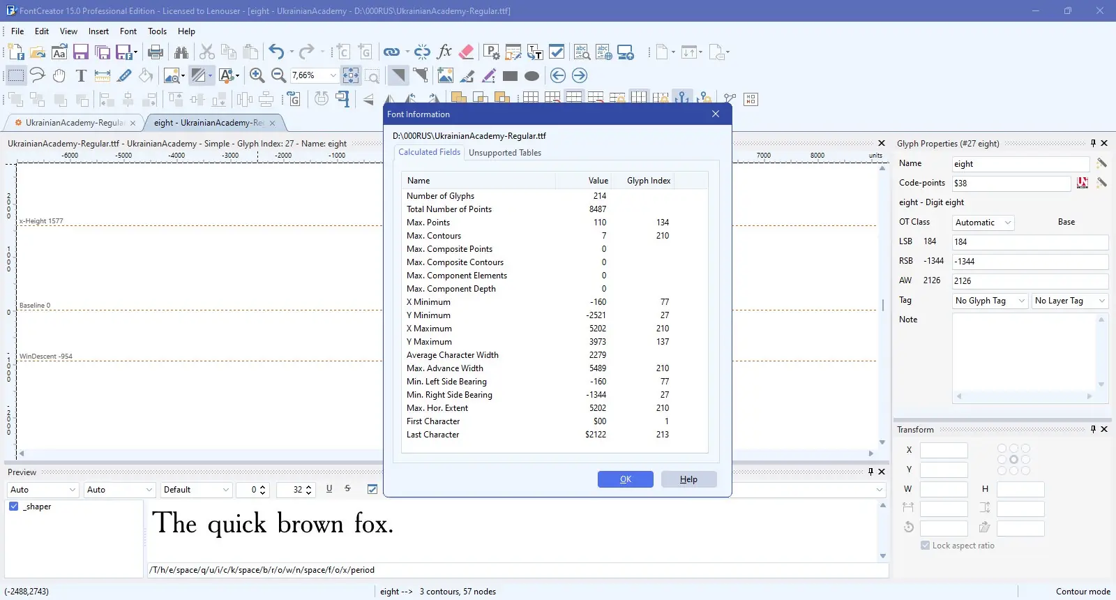 FontCreator обеспечивает высокую точность при редактировании контуров и автоматизирует рутинные задачи, такие как генерация жирных версий или создание композитных глифов.