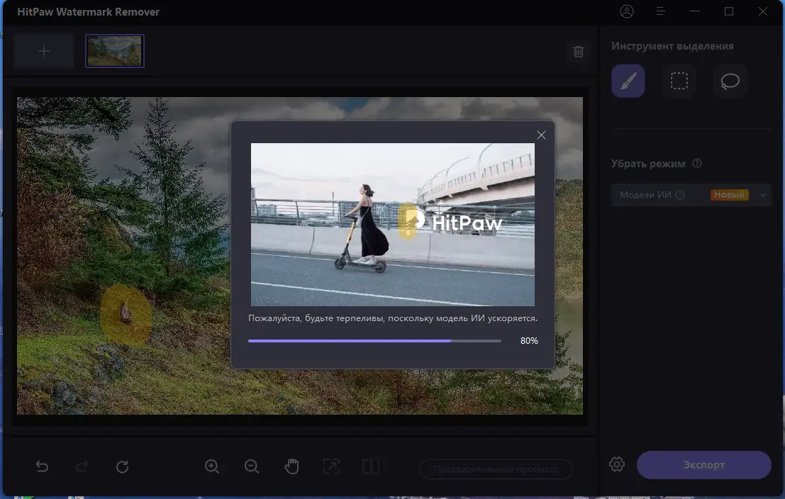 HitPaw Watermark Remover — это современный инструмент для быстрого и качественного удаления водяных знаков с фото и видео, работающий на базе алгоритмов искусственного интеллекта. Программа позволяет очищать изображения от ненужных элементов: дат, логотипов, надписей, случайных объектов и посторонних людей в кадре. Благодаря продуманному интерфейсу и поддержке множества форматов, приложение подходит как для новичков, так и для опытных пользователей.