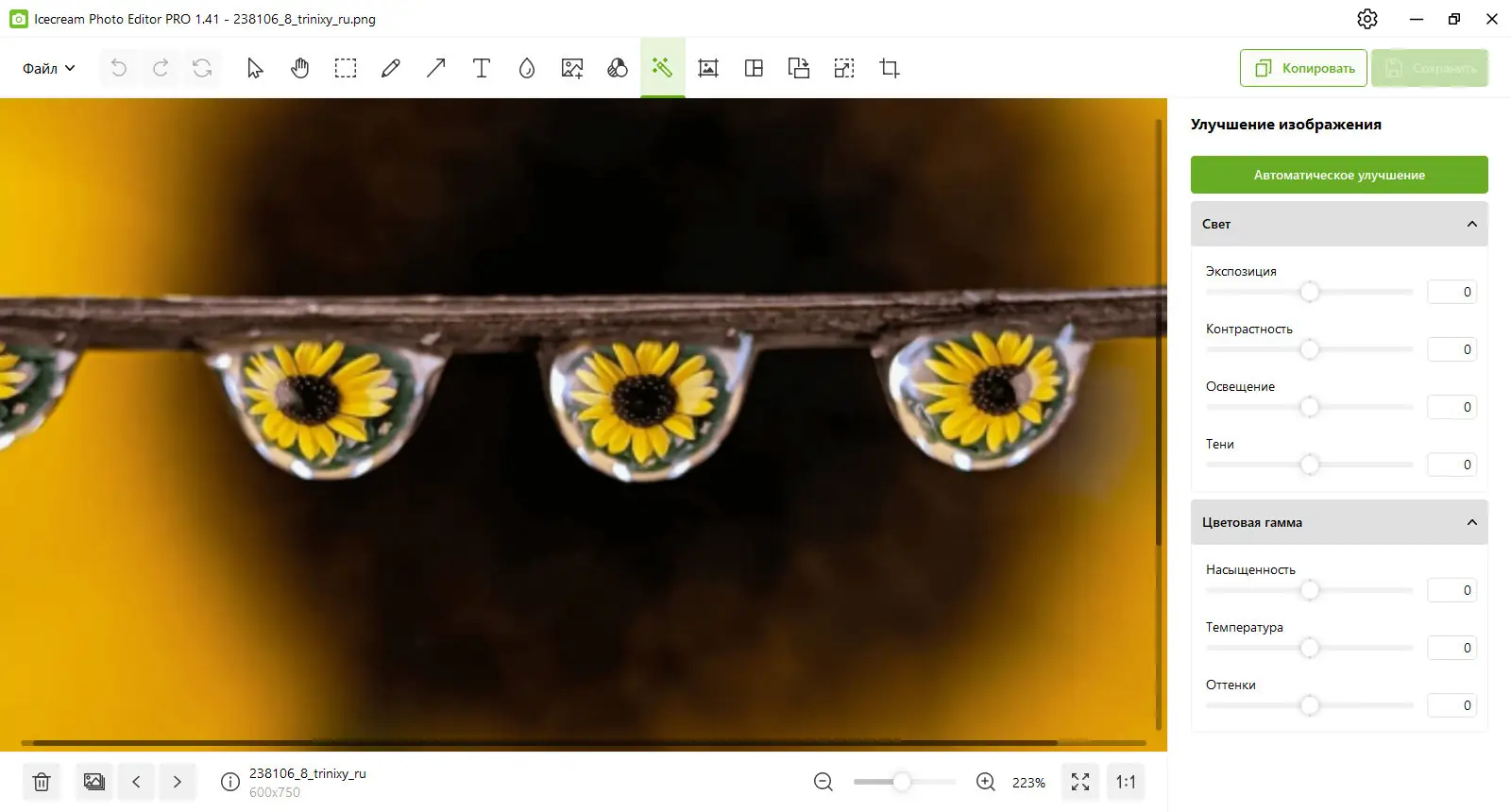 Icecream Photo Editor разработан как многофункциональное приложение для обработки цифровых изображений. Поддержка популярных форматов, таких как JPG, PNG, GIF, TIFF и BMP, делает его универсальным решением для повседневной работы с фото. Интерфейс программы интуитивно понятен и не перегружен лишними элементами, что особенно удобно для новичков. Все основные инструменты расположены в пределах одного клика, что ускоряет процесс редактирования.
