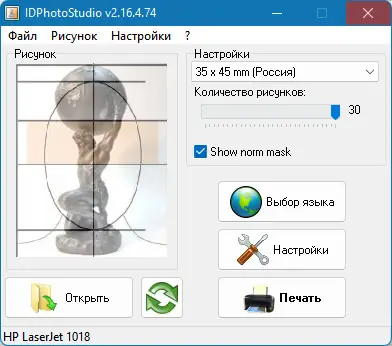Работа с IDPhotoStudio не требует специальных навыков. После запуска приложения пользователь выбирает изображение с помощью встроенного проводника, затем указывает тип документа — например, паспорт РФ или виза Шенген. Система автоматически применяет нужные пропорции и размеры, отображая предварительный просмотр. Можно настроить количество фото на листе, включить режим серых тонов или сепии, а также изменить фон при необходимости. Готовый макет легко отправляется на печать или сохраняется в формате JPEG для дальнейшего использования.