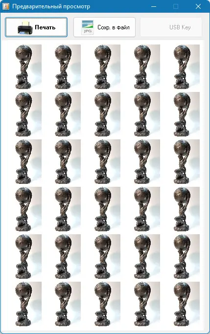 - Возможность печати нескольких снимков на одном листе с настраиваемыми полями