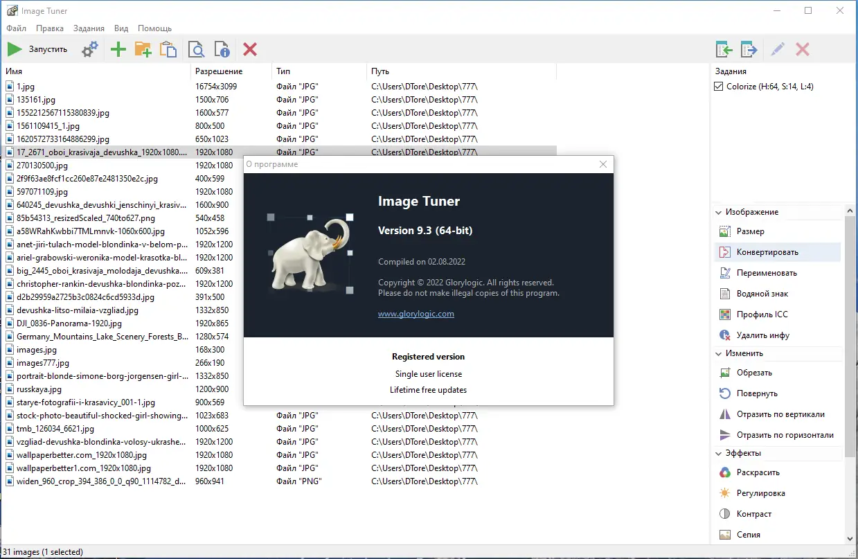 Image Tuner предназначен для автоматизации рутинных операций с цифровыми фотографиями и графическими файлами. Он позволяет одновременно обрабатывать множество изображений, что особенно полезно при подготовке фото для веб-сайтов, социальных сетей или электронной переписки. Поддержка форматов JPEG, PNG, BMP, GIF, TIFF и других делает утилиту универсальной в использовании.