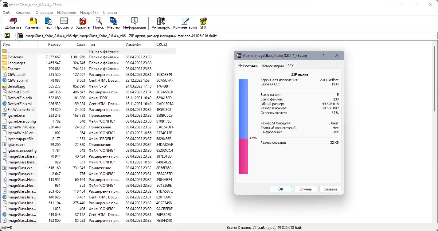 ImageGlass — это компактный и функциональный просмотрщик изображений, совместимый с широким спектром графических форматов, от классических JPEG и PNG до специализированных EXR и WEBP. Приложение отличается высокой скоростью работы, интуитивным интерфейсом и поддержкой дополнительных инструментов, таких как слайд-шоу, конвертация и извлечение кадров из анимации. Программа подходит как для повседневного использования, так и для профессиональных задач, связанных с обработкой графики.