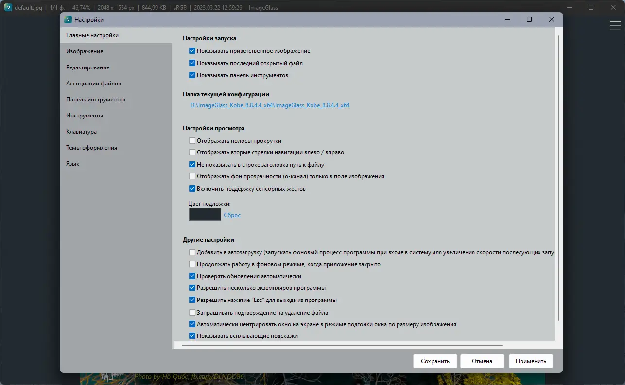 ImageGlass выделяется на фоне аналогичных программ благодаря балансу между производительностью и функциональностью. Он не требует установки, работает быстро, поддерживает расширения и легко адаптируется под нужды пользователя. При этом интерфейс остаётся простым и не перегруженным лишними элементами. Присутствует поддержка нескольких языков, включая русский, что упрощает использование для пользователей из разных регионов. Однако отсутствие встроенного редактора изображений может быть ограничением для тех, кто ожидает комплексного инструмента.