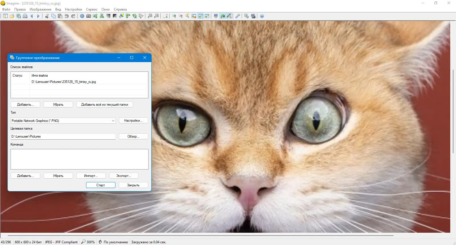 Работа с Imagine интуитивно понятна: достаточно перетащить файл или папку в окно программы, чтобы начать просмотр. Навигация осуществляется с помощью клавиш со стрелками, колеса мыши или горячих клавиш, которые можно настроить вручную. Встроенная панель миниатюр позволяет быстро переключаться между изображениями в каталоге, а режим мозаики полезен для проверки текстур на сшивание — особенно востребован среди разработчиков игр и моддеров. Для преобразования файлов доступна пакетная обработка: можно изменить формат, размер или переименовать группу изображений за один запуск.