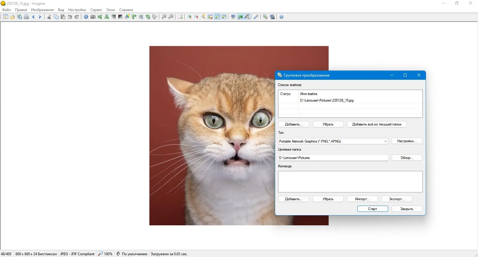 Работа с Imagine интуитивно понятна даже новичку. После запуска достаточно перетащить изображение в окно программы или открыть его через проводник. Навигация осуществляется с помощью клавиш со стрелками, колеса мыши или горячих клавиш, которые можно настроить под себя. В режиме браузера миниатюр можно быстро просматривать содержимое папок, а функция пакетного переименования и конвертации позволяет обрабатывать сразу несколько файлов. Для создания анимации или многостраничного TIFF поддерживается объединение изображений в один файл.