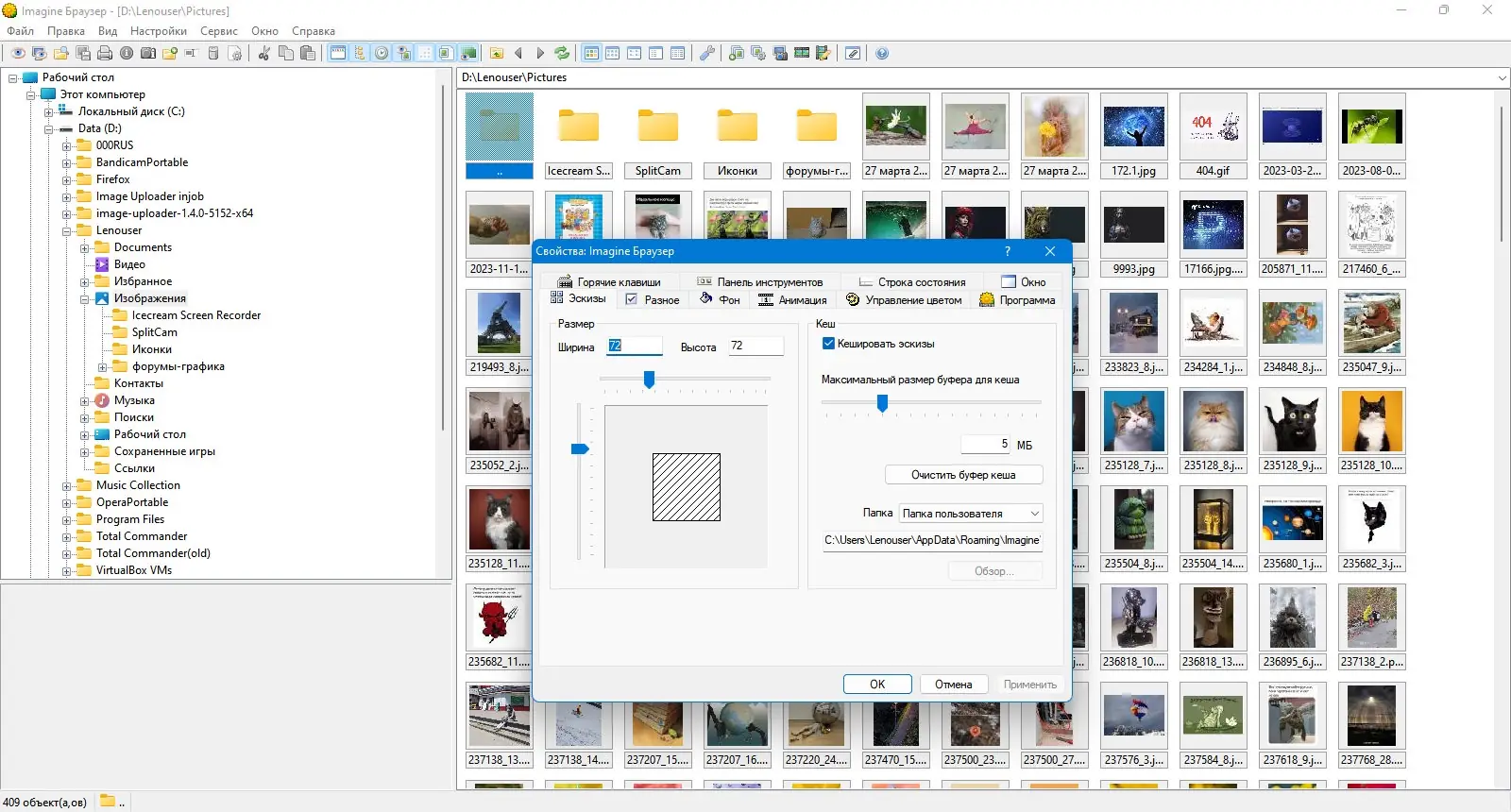 Imagine не записывает данные в реестр Windows, сохраняя настройки в локальных INI-файлах, что делает её идеальной для использования на портативных носителях.