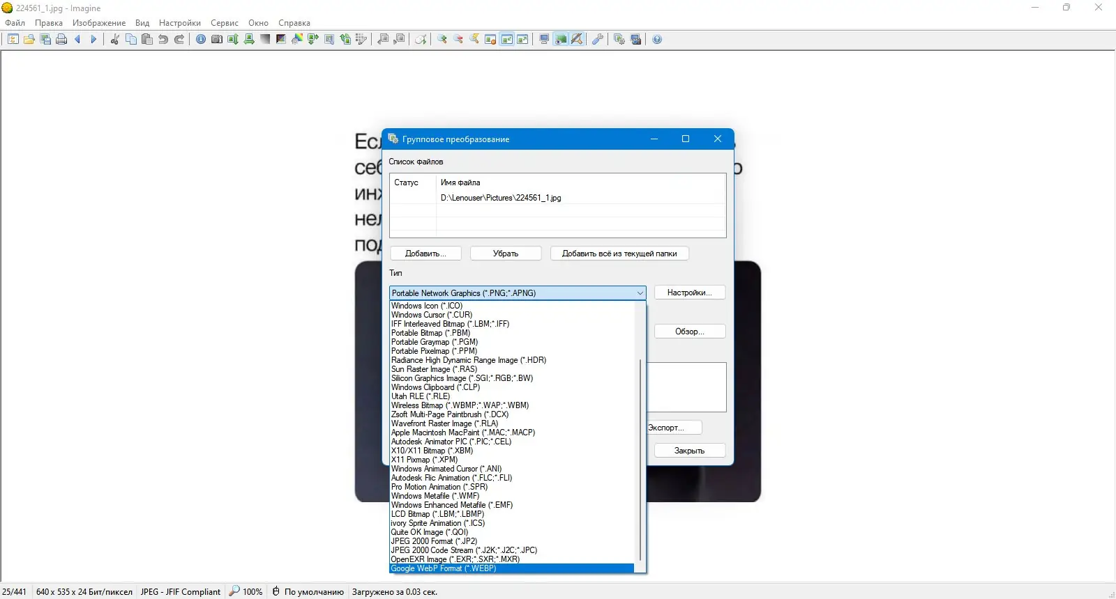 Imagine представляет собой компактное, но функциональное приложение для просмотра и базовой обработки изображений. Оно поддерживает большое количество графических форматов, включая редкие и архивные типы, что делает его универсальным инструментом для работы с визуальным контентом. Программа работает без записи в реестр, использует конфигурационные ini-файлы, что особенно удобно при использовании с флеш-накопителей.