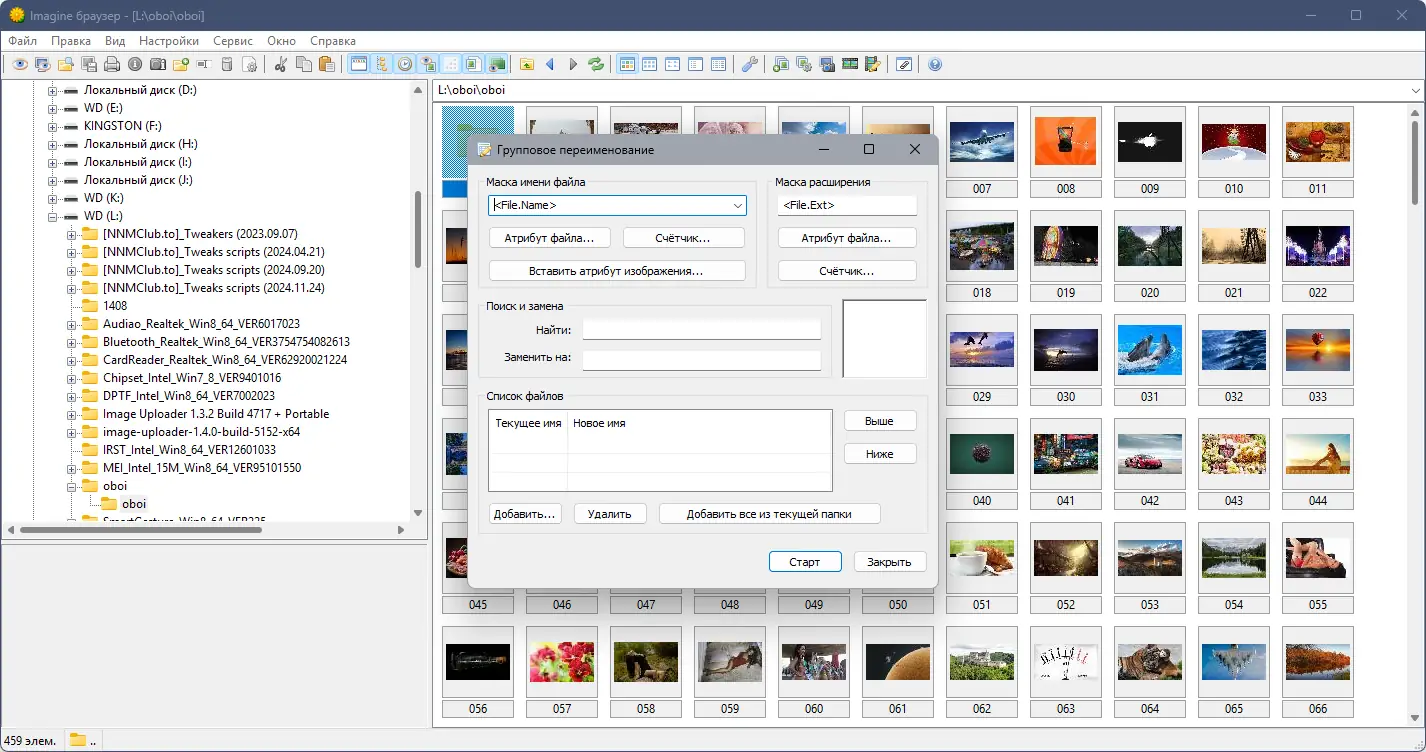 - Функции редактирования, конвертации и переименования файлов пакетно