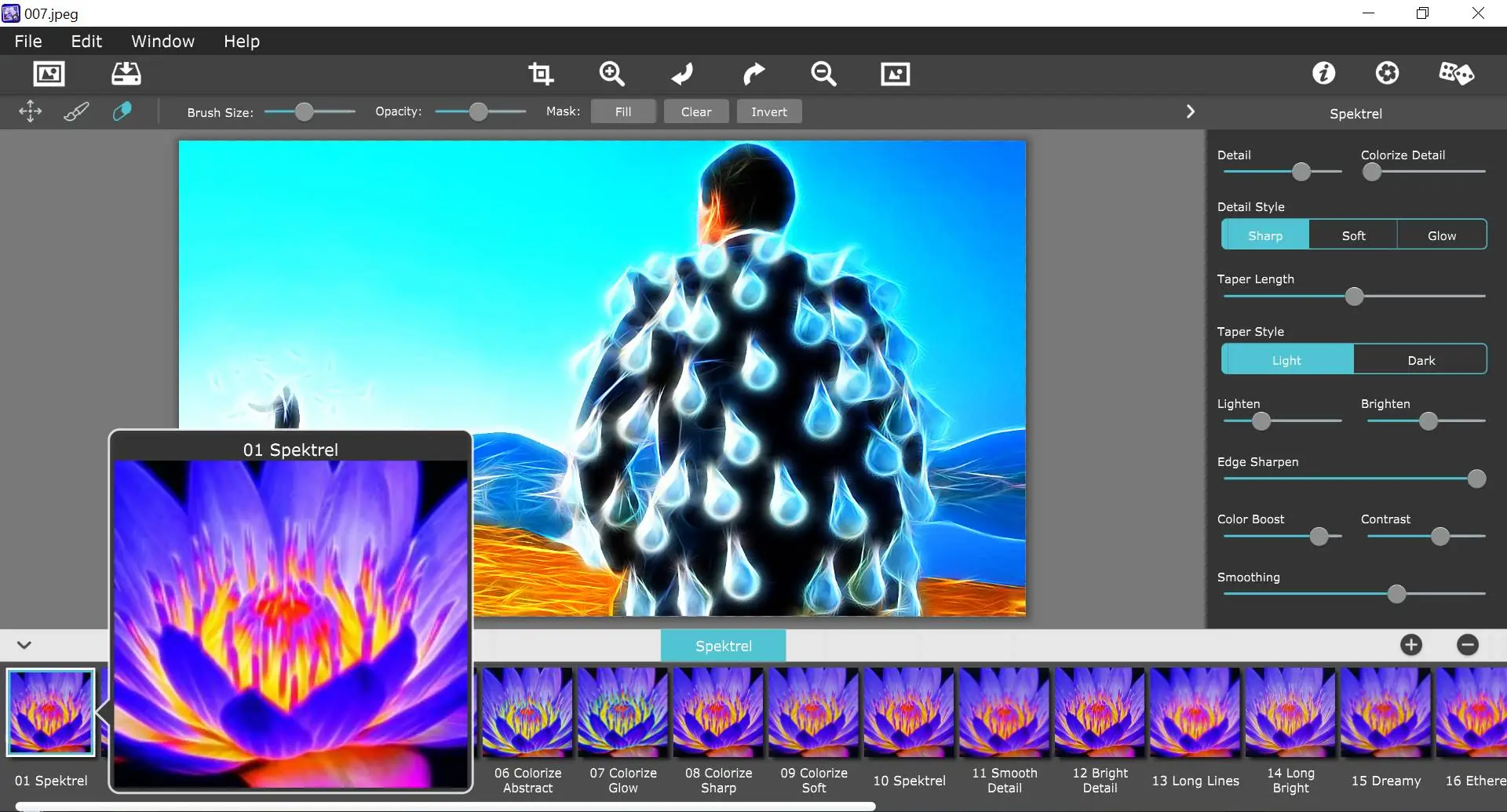 JixiPix Spektrel Art — это инструмент цифрового искусства, ориентированный на создание фантастических визуальных эффектов. Программа преобразует фотографии в картины, наполненные светом, бликами и динамикой. Благодаря продуманной системе настроек, каждый пользователь может экспериментировать с формой, цветом и структурой, получая уникальные результаты.