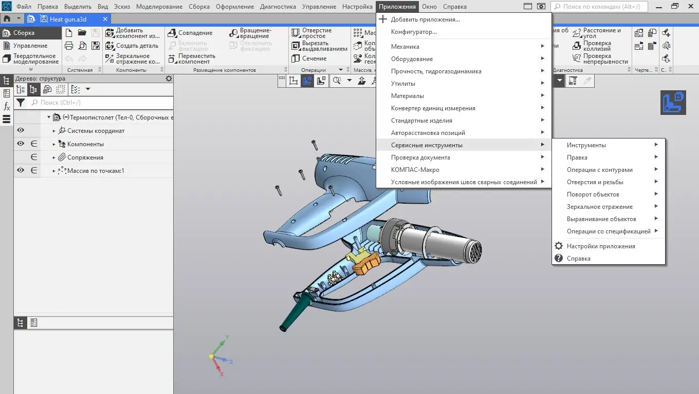Работа с КОМПАС-3D начинается с создания нового документа — детали, сборки или чертежа. В режиме эскиза задаются контуры будущей модели, после чего применяются операции выдавливания, вращения или вырезания. Для сборок доступны команды установки компонентов, настройки связей и проверки коллизий. Программа поддерживает параметрическое управление: изменение размера в одном месте автоматически перестраивает всю модель. Новые версии упрощают настройку интерфейса — можно создавать пользовательские панели, настраивать контекстные меню и управлять отображением инструментов. Для анализа геометрии предусмотрены инструменты проверки кривизны, непрерывности и зазоров между компонентами.