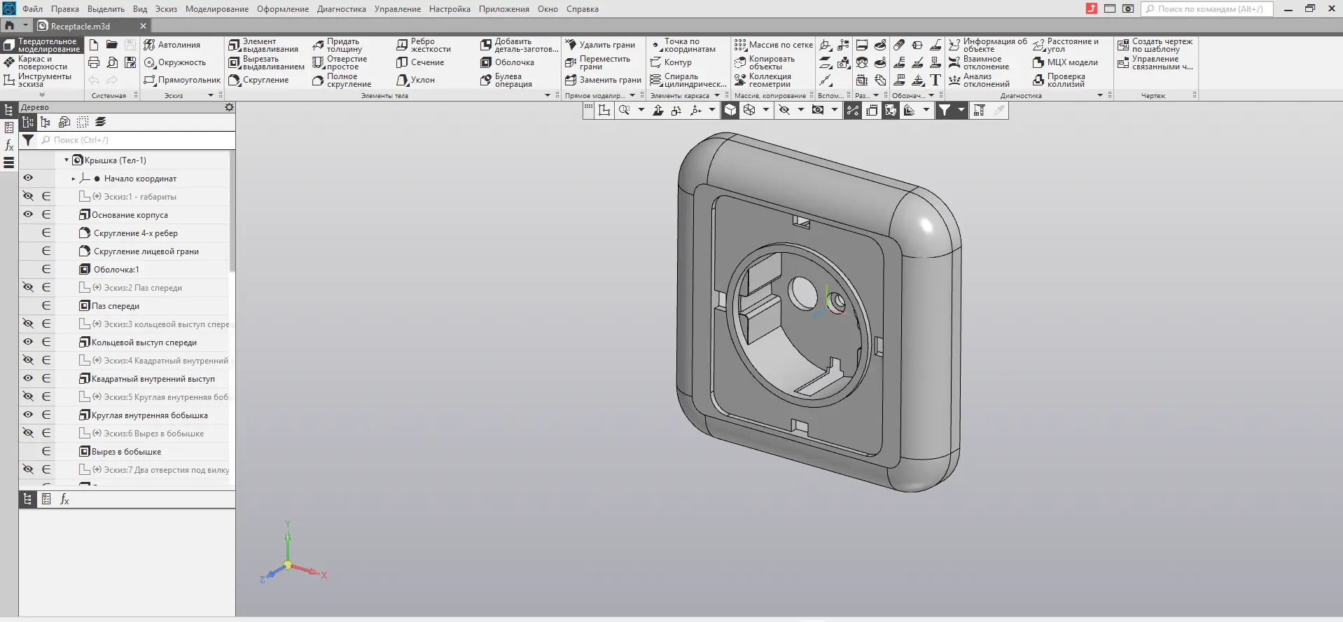 КОМПАС-3D представляет собой универсальную CAD-систему, предназначенную для проектирования изделий и объектов различной сложности. Программа поддерживает твердотельное и поверхностное моделирование, что позволяет создавать детали с высокой степенью точности. Основой функциональности является собственное математическое ядро С3D, разработанное командой АСКОН, обеспечивающее стабильную работу с геометрией и высокую скорость обработки данных.