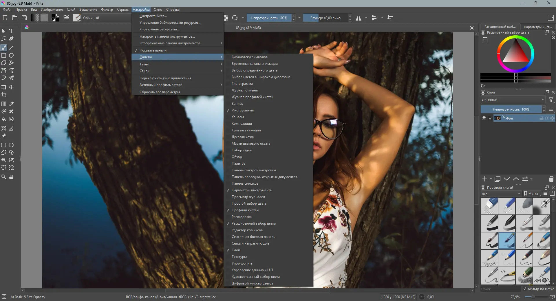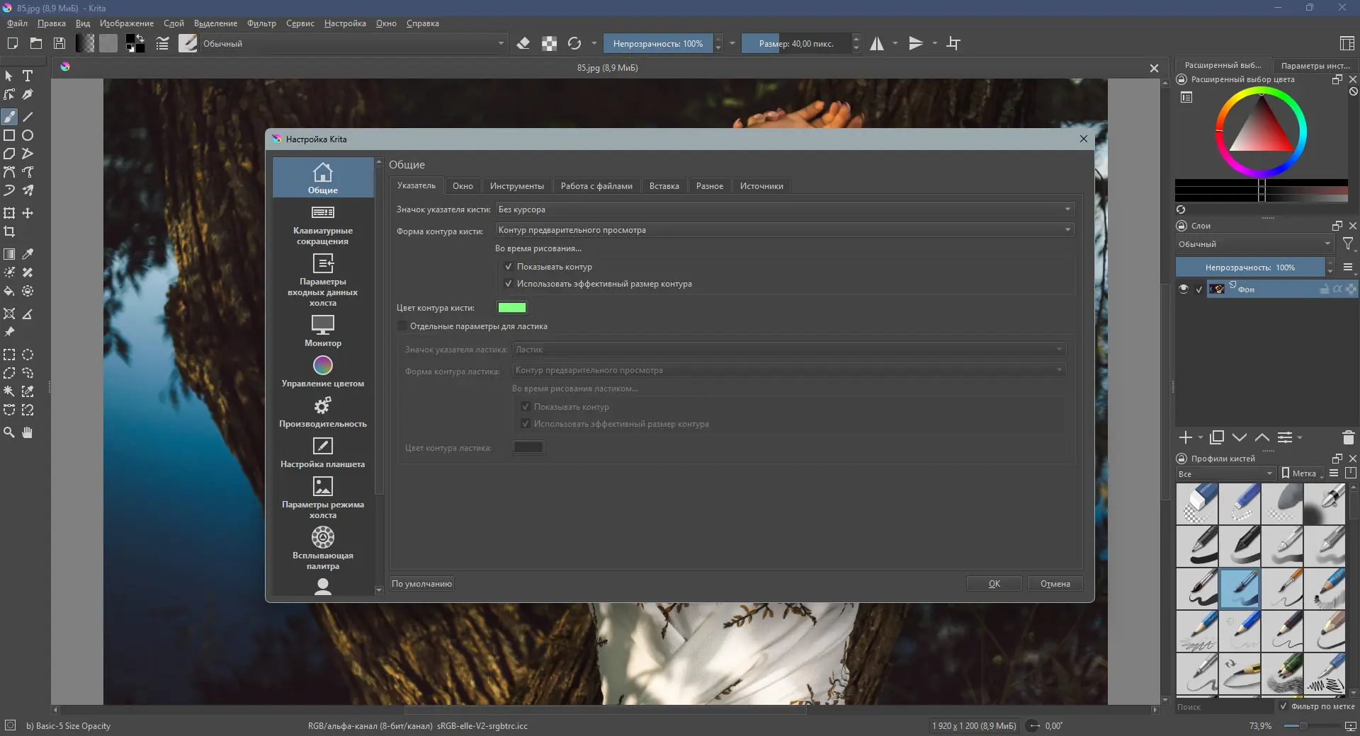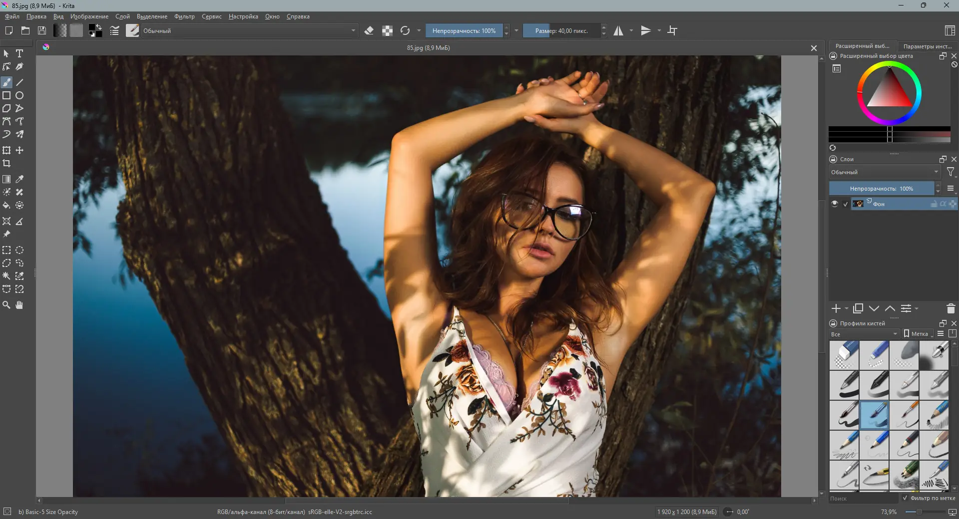 Начать работу с программой можно с создания нового холста, выбрав подходящие размеры и цветовую модель. Интерфейс легко адаптируется под задачи пользователя: панели можно переставлять, сохранять макеты и быстро переключаться между ними. Основной процесс рисования строится вокруг инструментов кисти, карандаша, заливки и инструмента Cage для пластичной деформации объектов. Поддержка HDR-изображений и импорт RAW-файлов позволяют использовать Krita и в задачах коррекции изображений. Псевдо-бесконечный холст, его поворот и зеркалирование удобны при создании симметричных композиций.