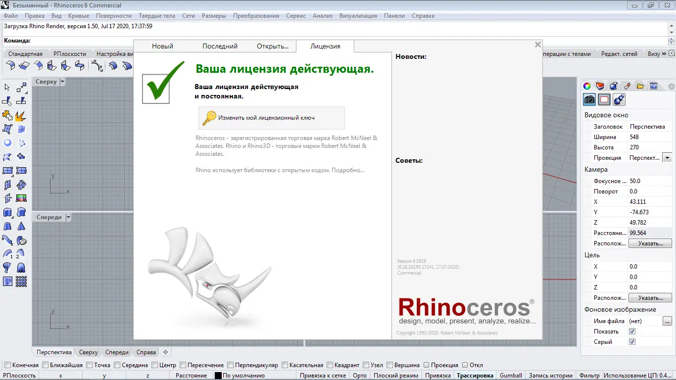 Для запуска Rhino 6 после установки необходимо применить патч к файлу RhinoCore.dll через специальный инструмент, запускаемый от имени администратора. Патч следует разместить в каталоге «Rhino 6\System», после чего выполнить процесс активации. Программа поддерживает выбор языка интерфейса в настройках установки, включая русский и другие локализации.