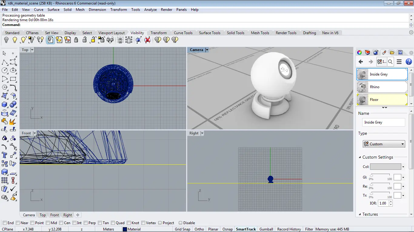 Rhinoceros демонстрирует высокую эффективность в работе с трехмерными моделями, особенно в сегментах, где требуется точность и контроль над формой. Программа активно развивается, получая регулярные обновления и улучшения функционала. Интеграция Grasshopper напрямую в ядро Rhino значительно расширяет возможности параметрического моделирования.
