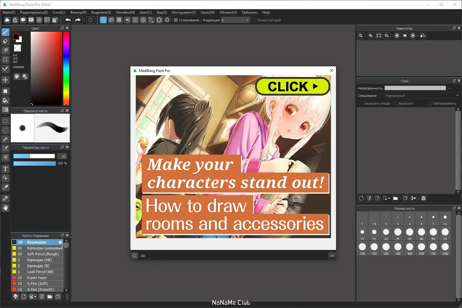 MediBang Paint позволяет создавать профессиональные работы, используя как стандартные, так и дополнительные инструменты, доступные через облако.