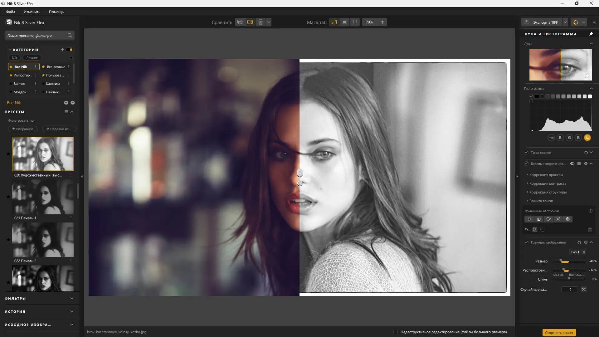 Использование Nik Collection начинается с установки плагинов в совместимое программное обеспечение, такое как Adobe Photoshop или Lightroom. После интеграции доступ к инструментам осуществляется через меню фильтров. Каждый плагин запускается отдельно и предоставляет доступ к предустановкам, кривым, фильтрам и инструментам локальной коррекции. Например, при работе с Silver Efex можно применять имитацию чёрно-белых плёнок, регулировать контраст и добавлять виньетирование. В Color Efex доступны сотни творческих эффектов, включая улучшение деталей, коррекцию тона и работу с атмосферой изображения. Благодаря новой системе масок, редактирование в одном плагине можно переносить в другой или возвращать в photoshop для доработки. Это делает рабочий процесс последовательным и гибким. Также доступна функция быстрого экспорта, позволяющая мгновенно сохранять результат в нужном формате, например TIFF, без задержек и лишних шагов.