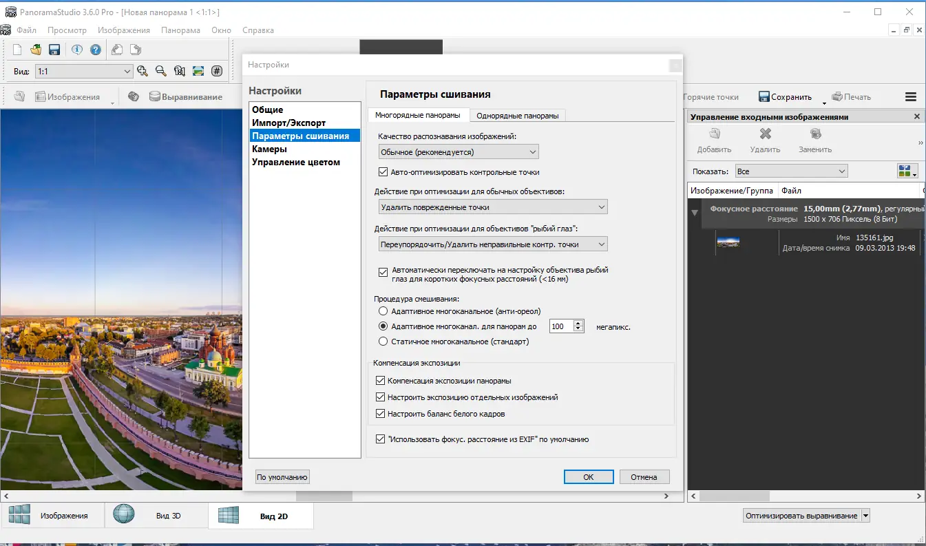 - Высокая точность автоматического склеивания изображений